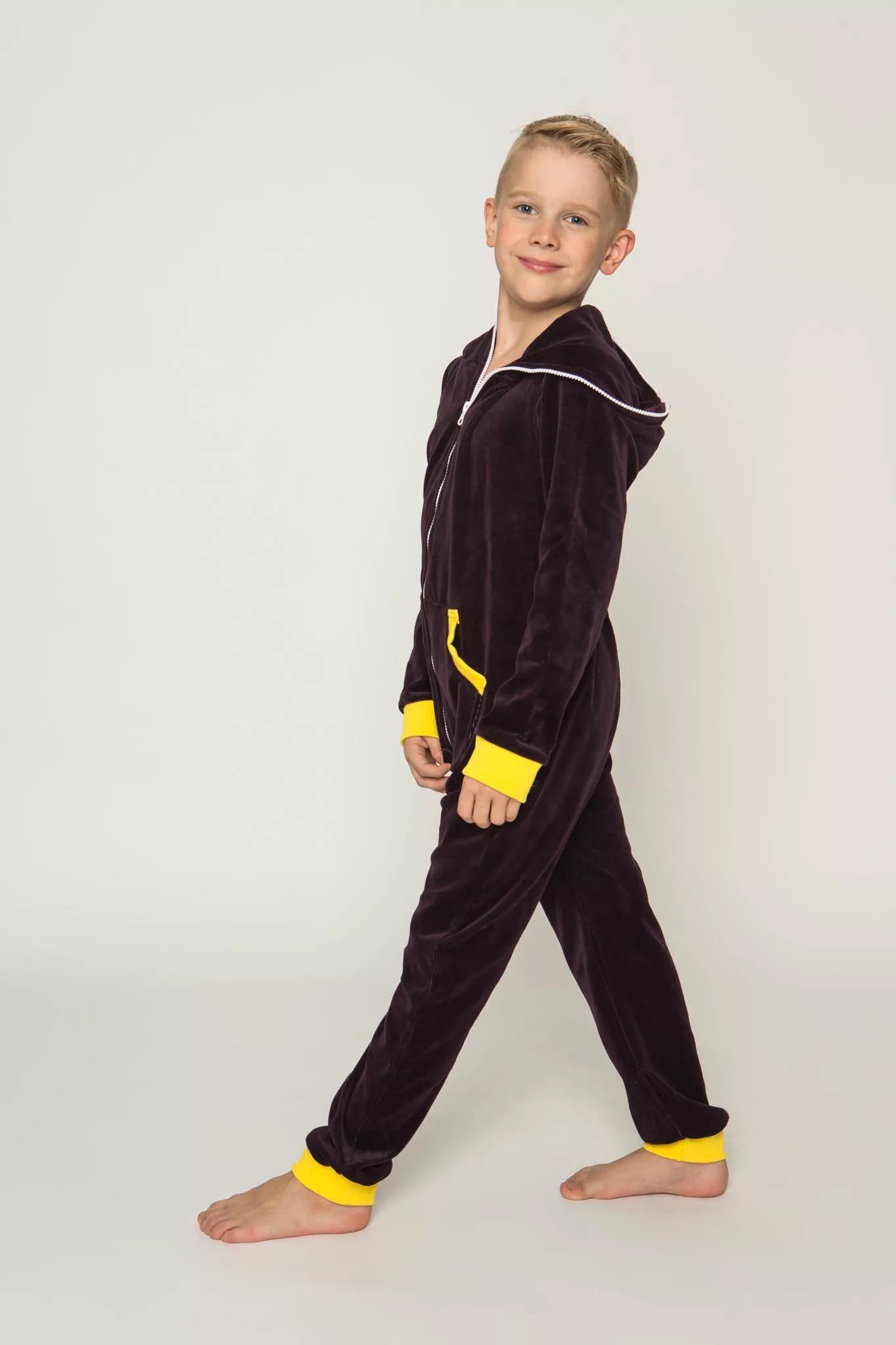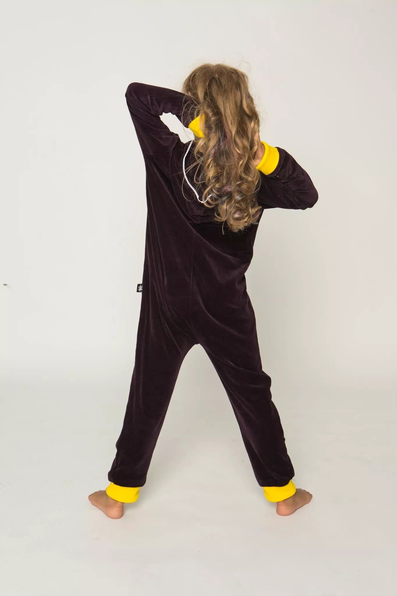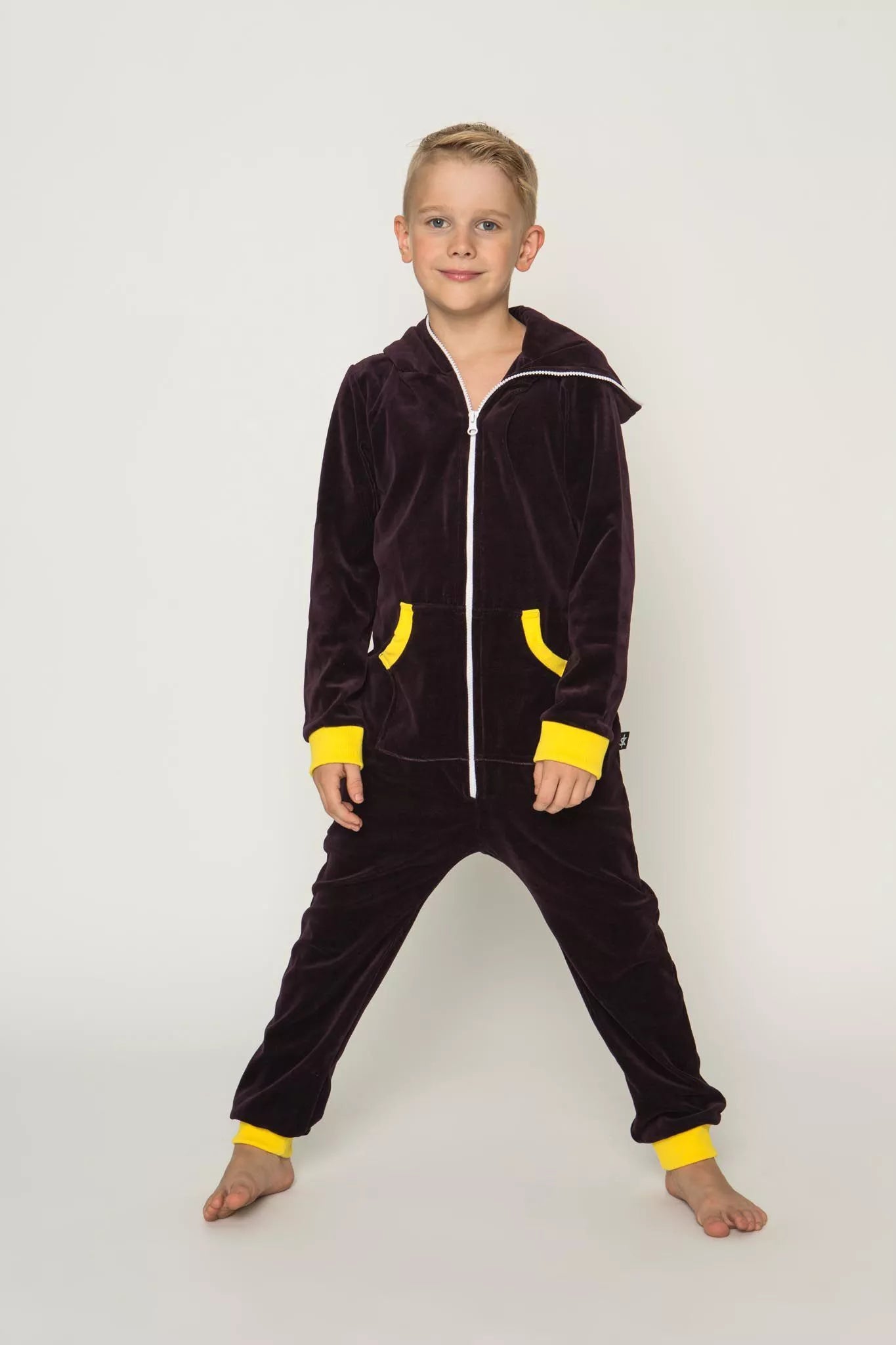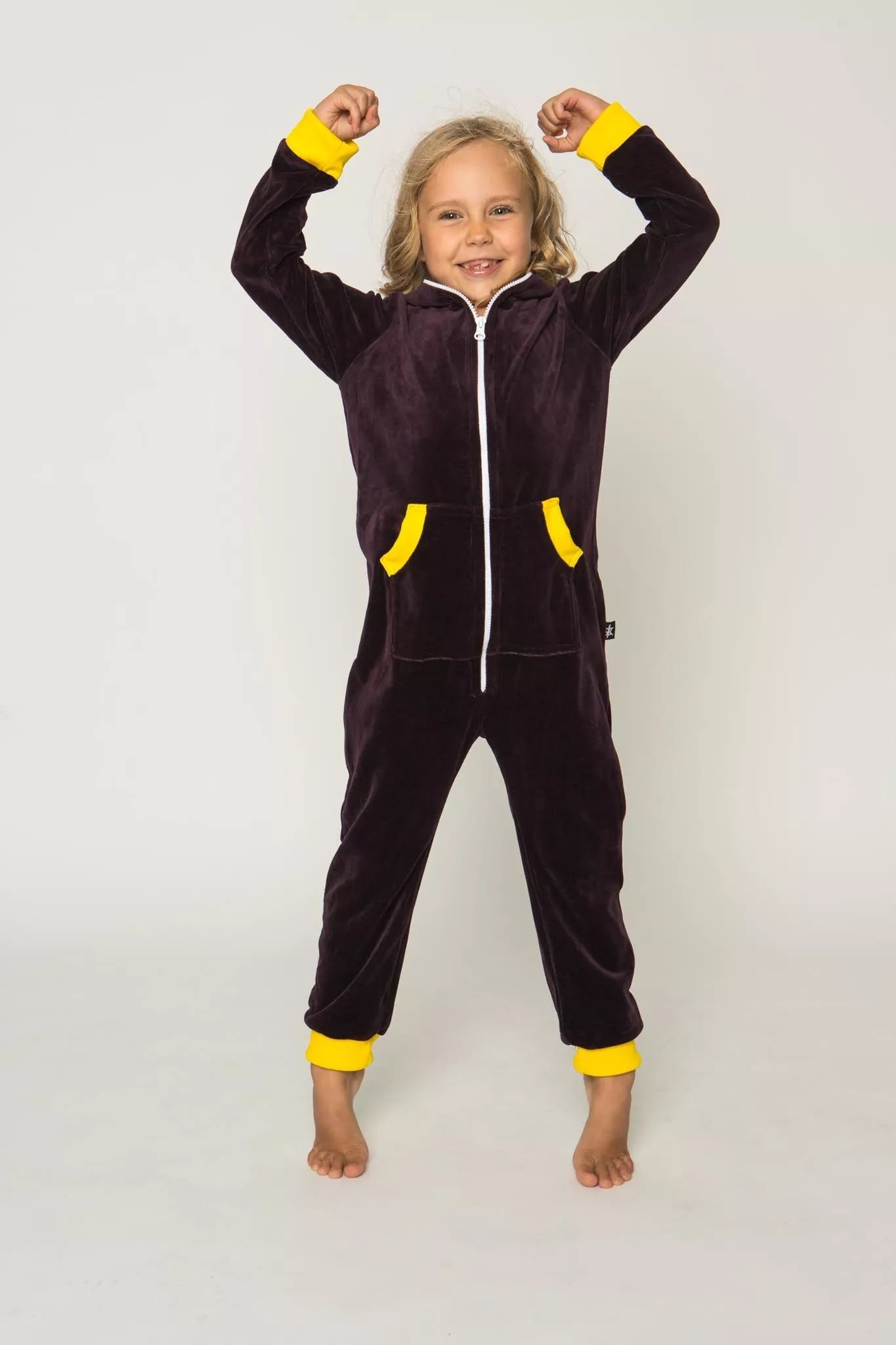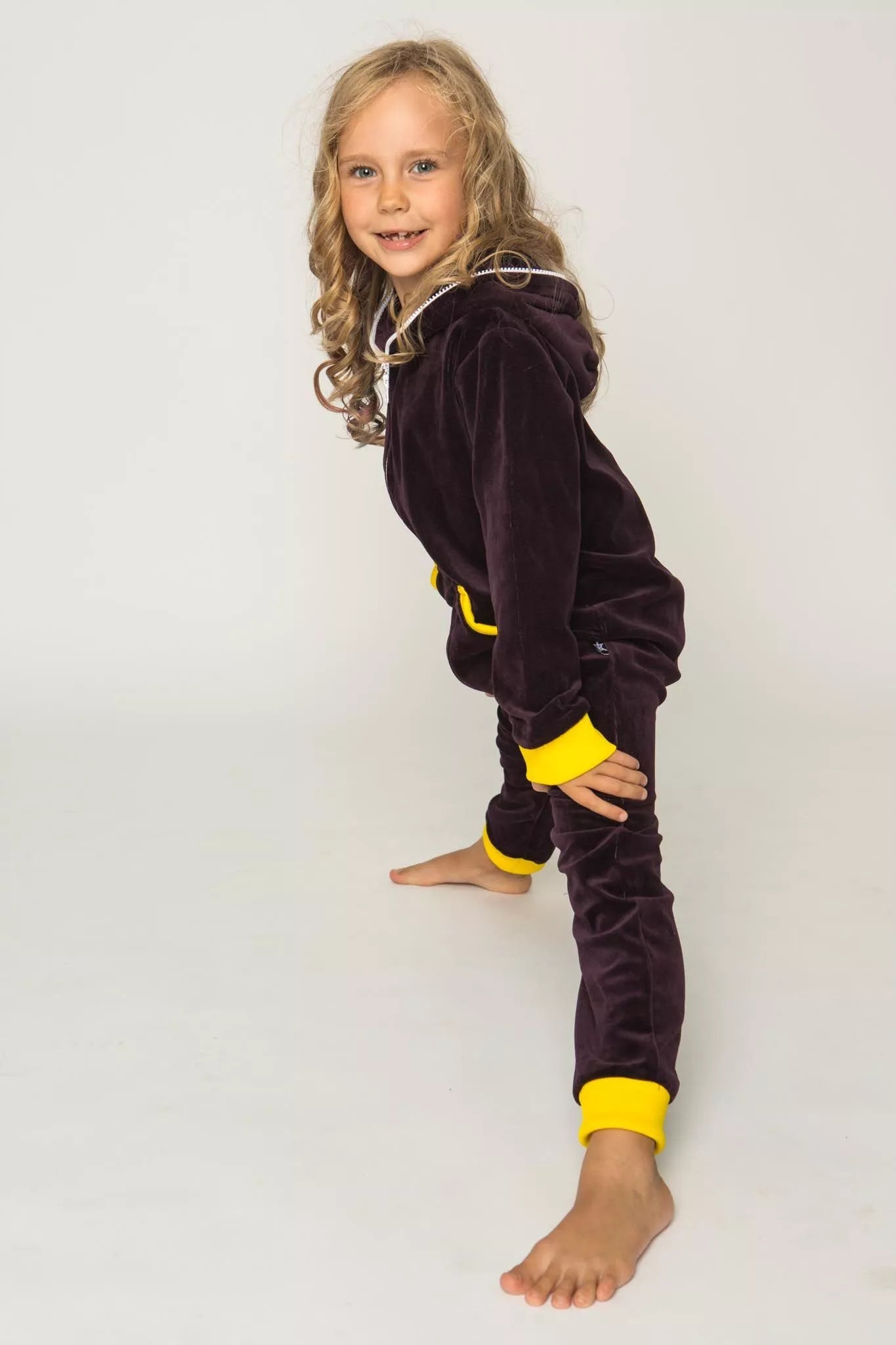 Sofa Killer baklažano spalvos vaikiškas veliūrinis kombinezonas