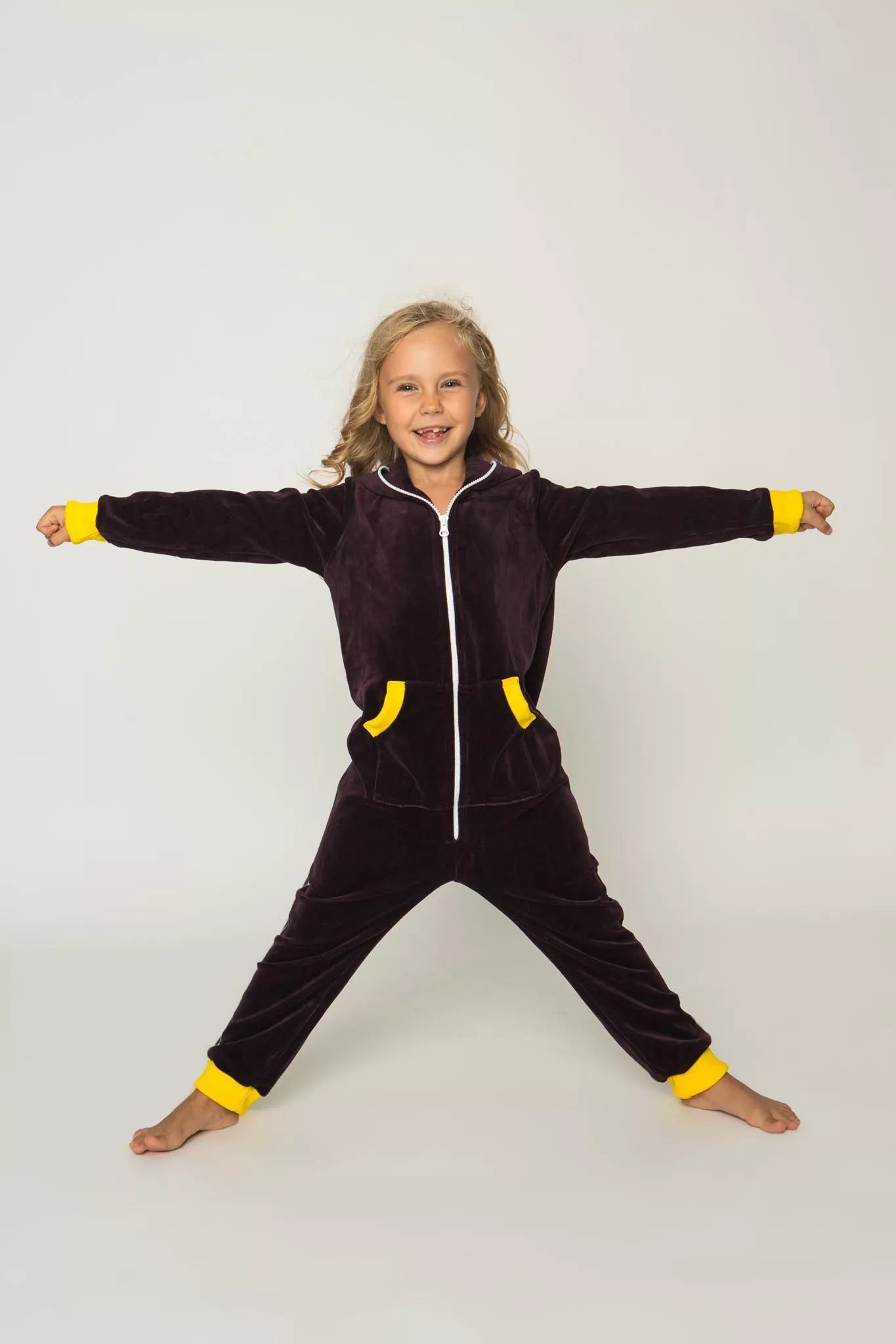 Šiltas jaukus vaikiškas baklažano spalvos veliūrinis kombinezonas, tiek mergaitėms tiek berniukams, skirtas visai šeimai. Jei neradote pageidaujamos spalvos susiekite, kombinezono ir pačių rankogalių vaiko ar visos šeimos iniviualumui pabrėžti (užsakant kombineonus šeimai suteikiame nuolaidas - susisiekite). Priekyje kišenės apsiūtos rankogalių medžiaga. Medžiagos vidinė dalis su tankiu pūkeliu, kuris sukuria įpatingą šilumos jausmą ir norą vilkėti kombinezoną nuolat. Sofa Killer kombinezonų modeliai nevaržo judesių, tad puikiai tinka tiek pasyviam tiek aktyviam poilsiui, net miegui. Galite rinktis iš plačios dydžių skalės, o pats rūbas tradiciškai turi būti laisvas, tad kiek didesnis dydis puikiai tiks. Dekoruota Sofa Killer logotipu po kišene. turime nuotraukose matomus modelius.