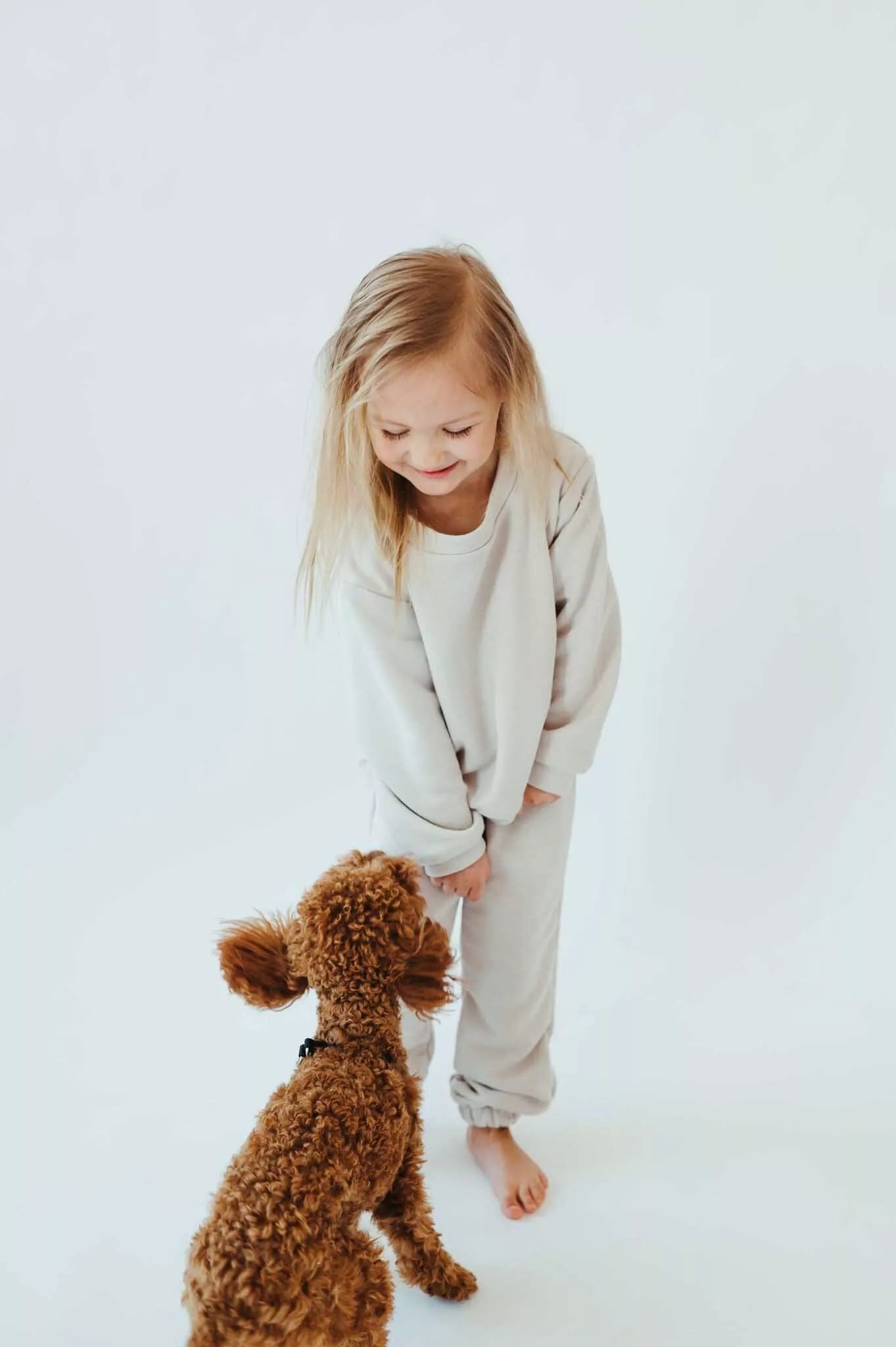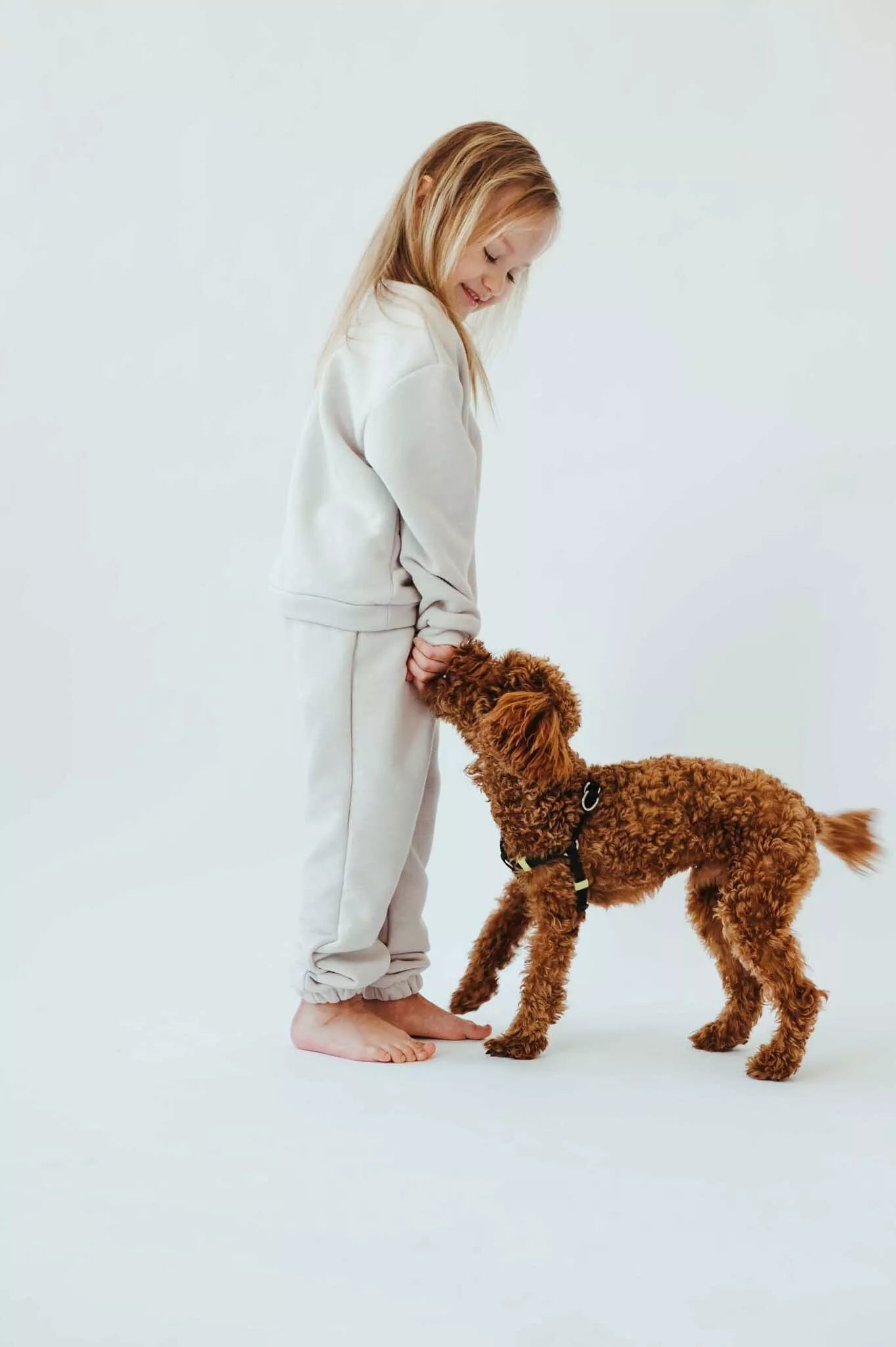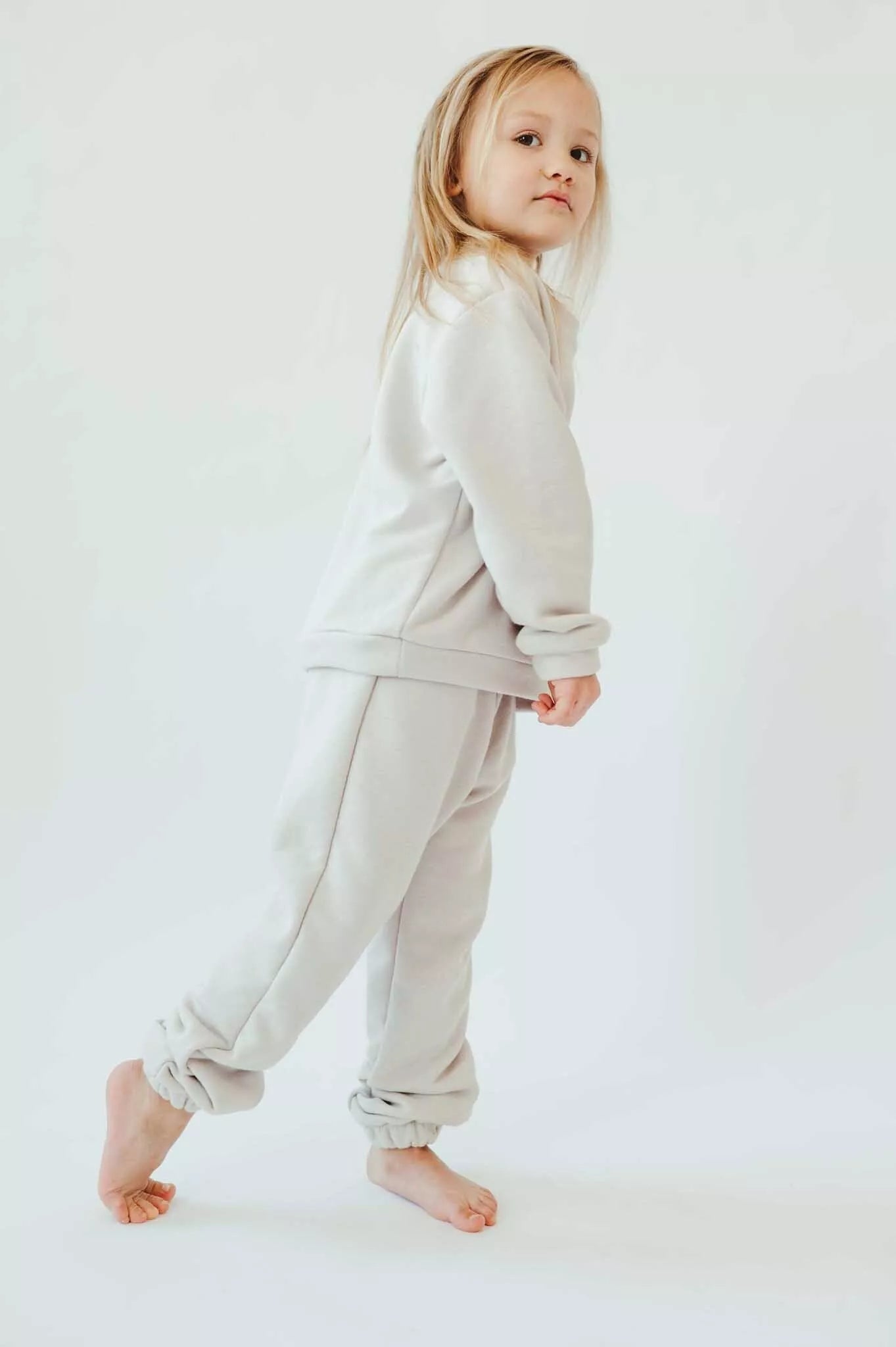 Šiltos ir jaukios vaikiškos balto smėlio spalvos laisvalaikio kelnės, tiek mergaitėms tiek berniukams, skirtos visai šeimai. Vaiko ar visos šeimos iniviualumui pabrėžti (užsakant laisvalaikio kelnių šeimai suteikiame nuolaidas - susisiekite). Medžiagos vidinė dalis su tankiu pūkeliu, kuris sukuria įpatingą šilumos jausmą ir norą vilkėti laisvalaikio kelnes nuolat. Sofa Killer laisvalaikio modeliai nevaržo judesių, tad puikiai tinka tiek pasyviam tiek aktyviam poilsiui, net miegui. Galite rinktis iš plačios dydžių skalės, o pats rūbas tradiciškai turi būti laisvas, tad kiek didesnis dydis puikiai tiks.