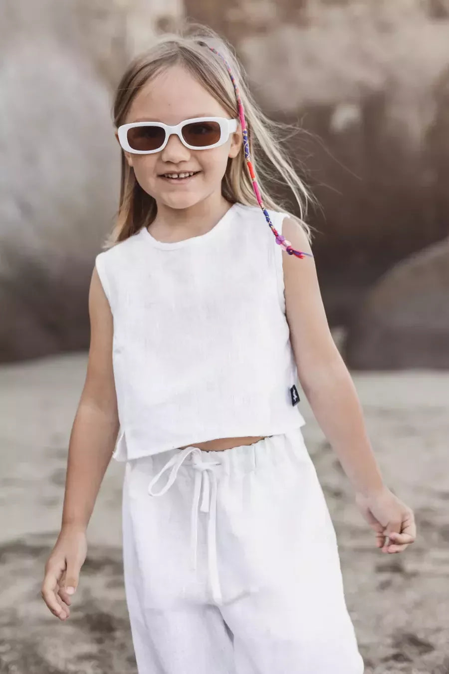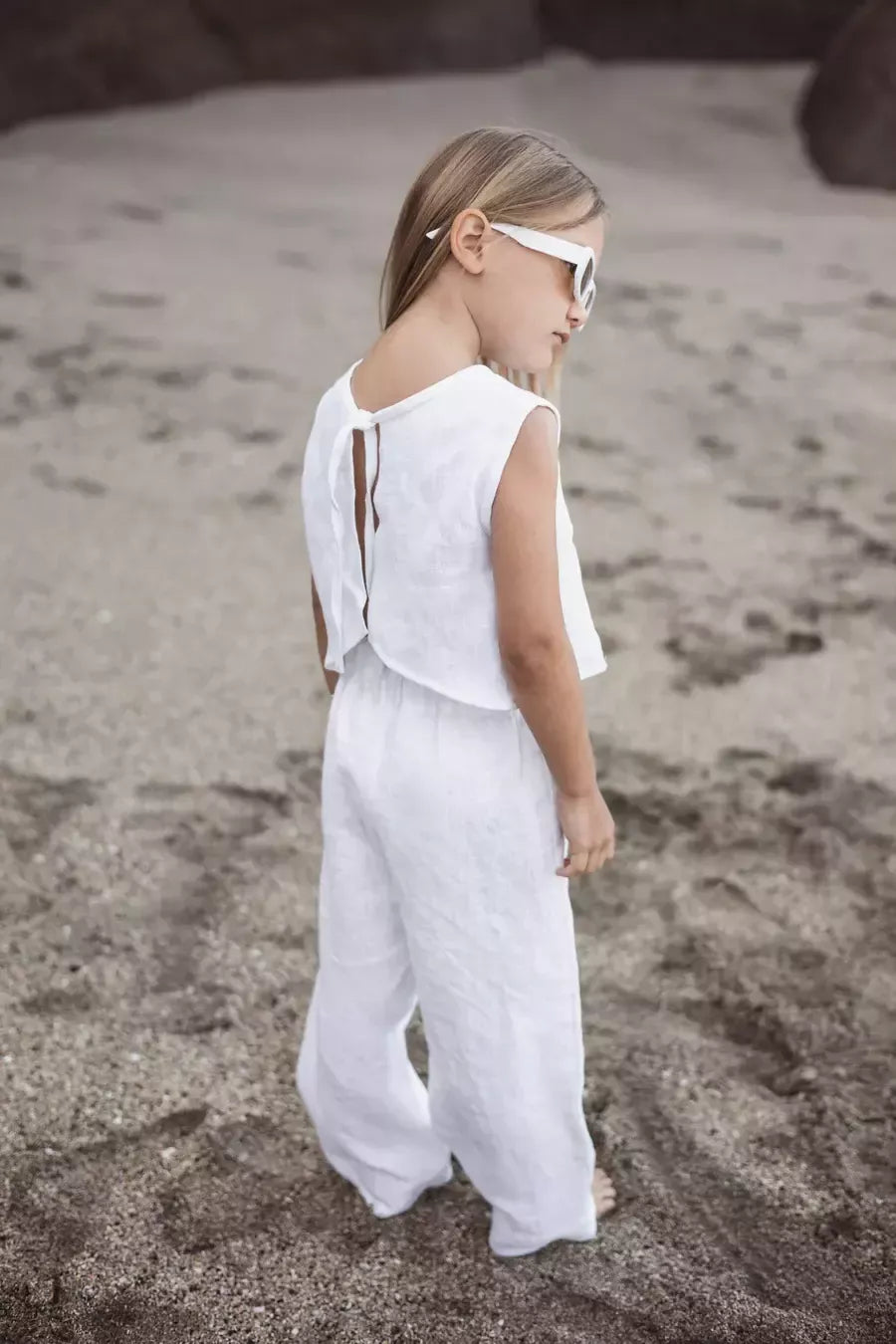 Sofa Killer baltos spalvos vaikiškas lininis kostiumėlis su kelnėmis