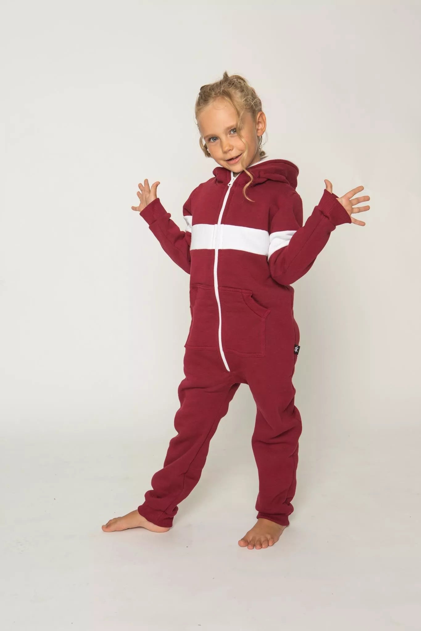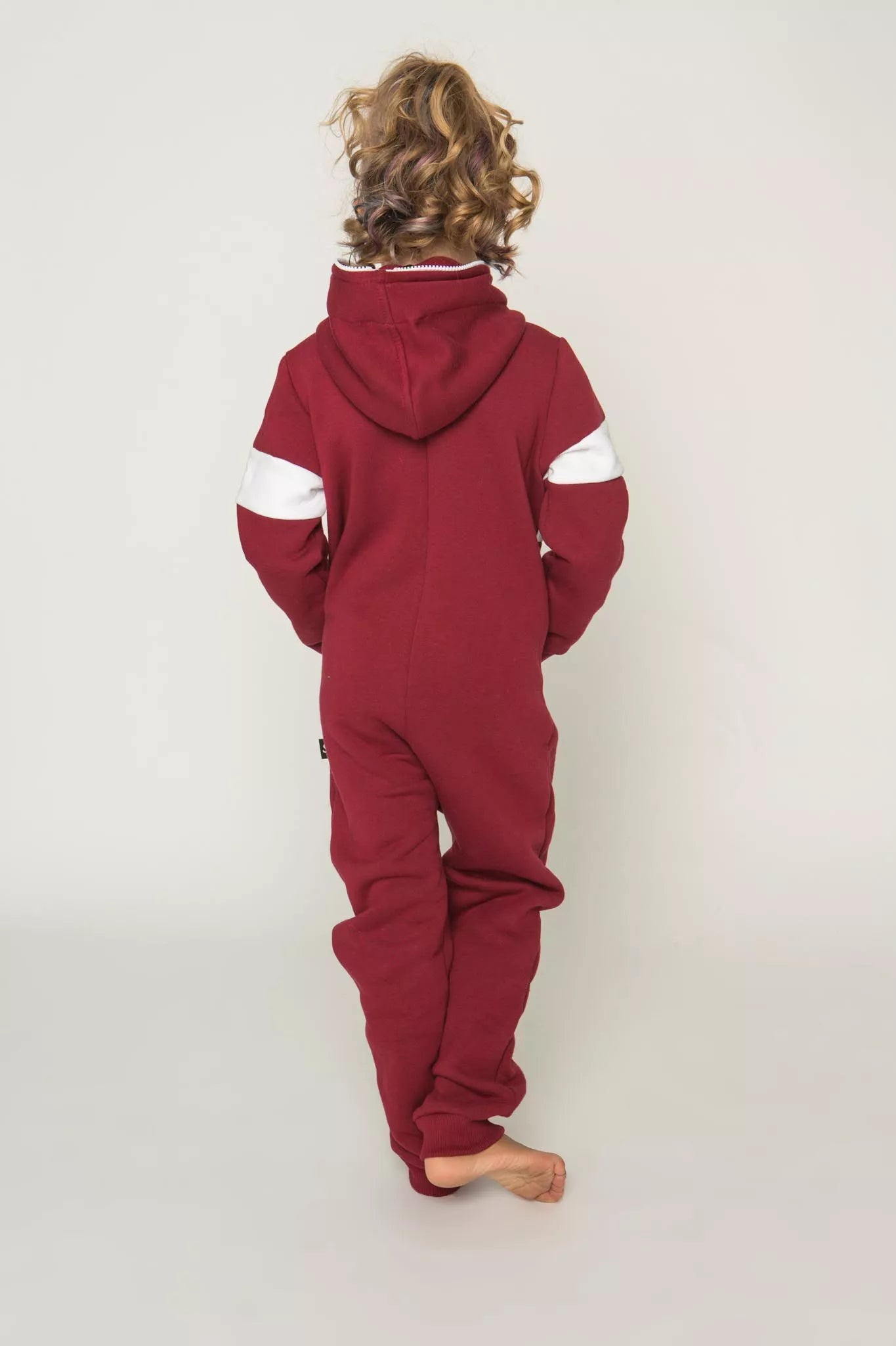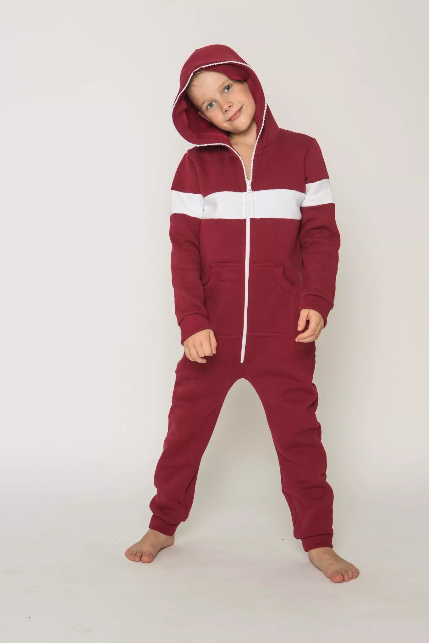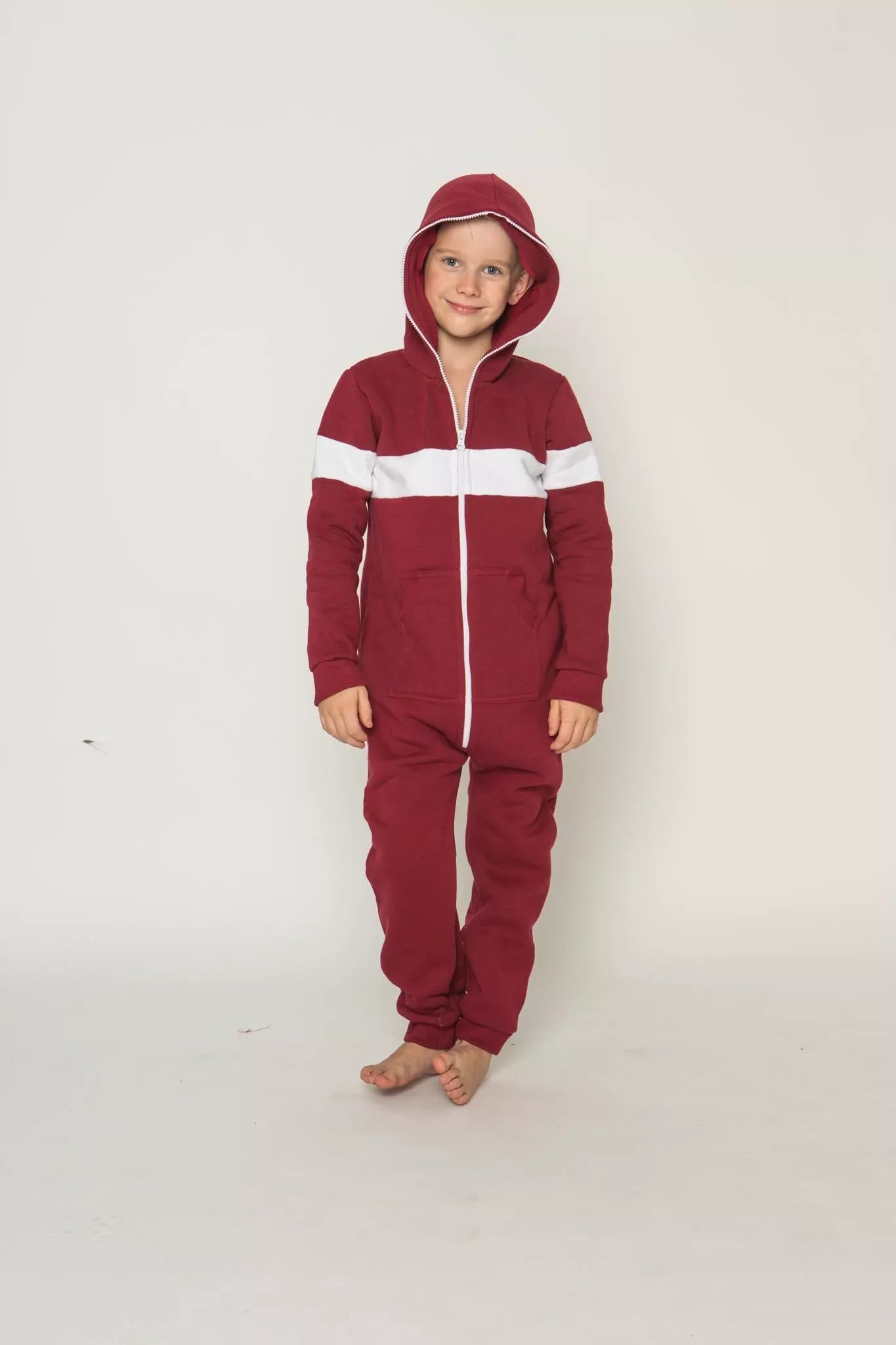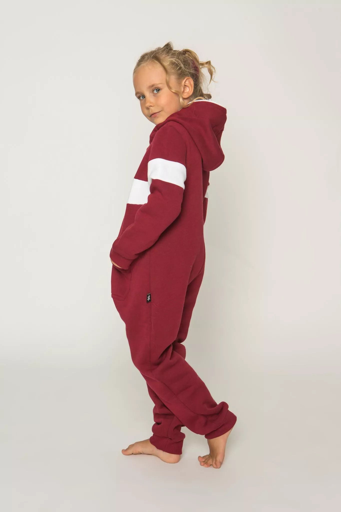 Sofa Killer bordo spalvos vaikiškas kombinezonas Riga su rbalta horizontalia juosta ties krutine, tiek mergaitėms tiek berniukams, skirtas visai šeimai. Jums tereikia pasirinki rankogalių spalvą (jei neradote pageidaujamos spalvos susiekite), vaiko ar visos šeimos iniviualumui pabrėžti (užsakant kombineonus šeimai suteikiame nuolaidas - susisiekite). Priekyje kišenės apsiūtos rankogalių medžiaga. Medžiagos vidinė dalis su tankiu pūkeliu, kuris sukuria įpatingą šilumos jausmą ir norą vilkėti kombinezoną nuolat. Sofa Killer kombinezonų modeliai nevaržo judesių, tad puikiai tinka tiek pasyviam tiek aktyviam poilsiui, net miegui. Galite rinktis iš plačios dydžių skalės, o pats rūbas tradiciškai turi būti laisvas, tad kiek didesnis dydis puikiai tiks. Dekoruota Sofa Killer logotipu po kišene. turime nuotraukose matomus modelius.