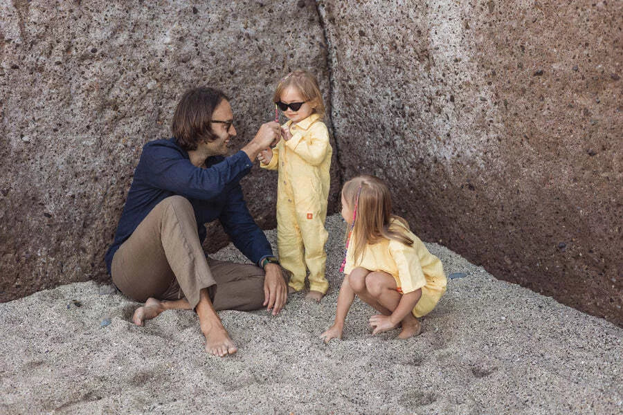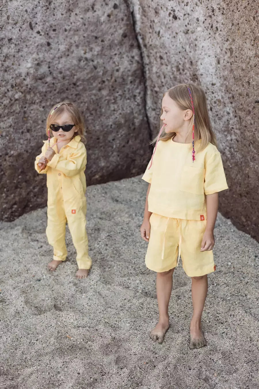 Sofa Killer citrinos spalvos vaikiškas lininis kombinezonas