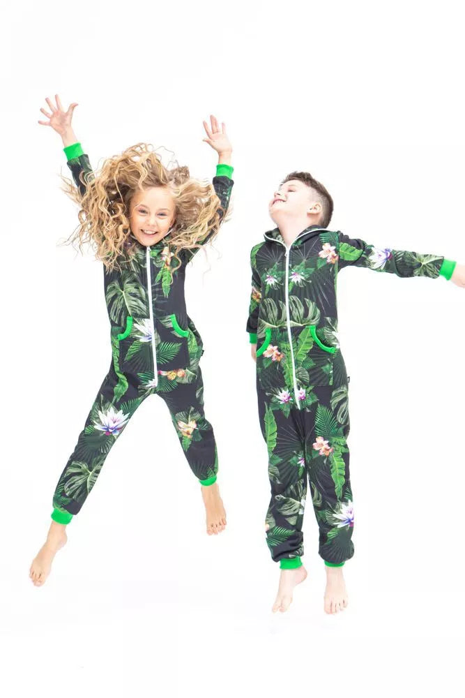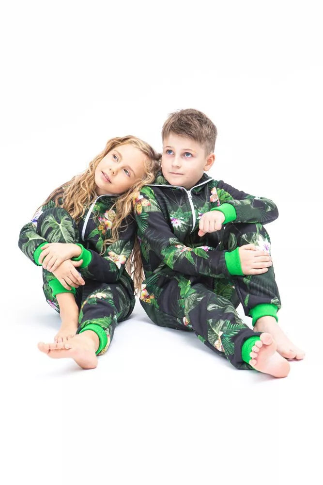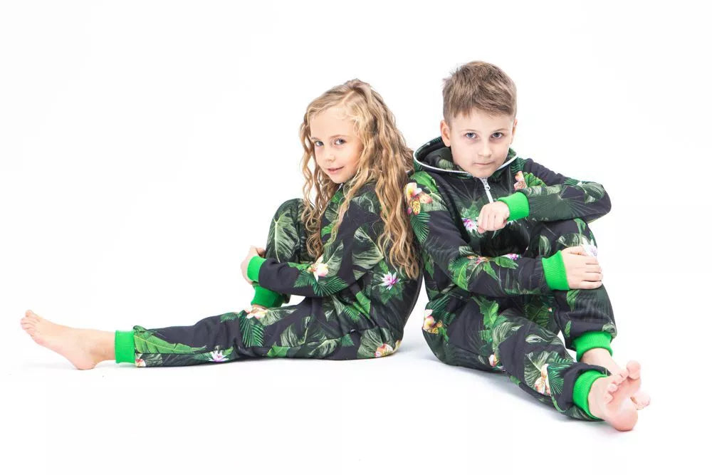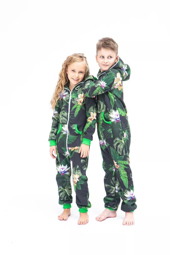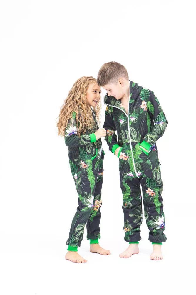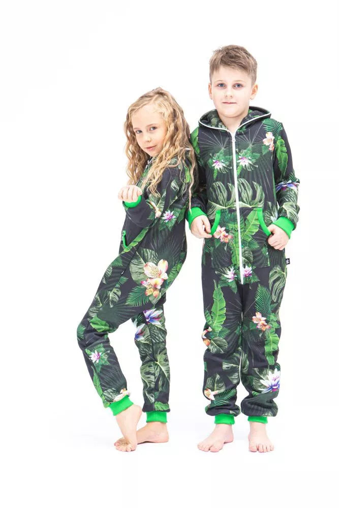 Sofa Killer gelėtas vaikiškas kombinezonas Tropical su augalų printu, tiek mergaitėms tiek berniukams, skirtas visai šeimai. Priekyje kišenės apsiūtos salotinių rankogalių medžiaga. Medžiagos vidinė dalis su tankiu pūkeliu, kuris sukuria įpatingą šilumos jausmą ir norą vilkėti kombinezoną nuolat. Sofa Killer kombinezonų modeliai nevaržo judesių, tad puikiai tinka tiek pasyviam tiek aktyviam poilsiui, net miegui. Galite rinktis iš plačios dydžių skalės, o pats rūbas tradiciškai turi būti laisvas, tad kiek didesnis dydis puikiai tiks. Dekoruota Sofa Killer logotipu po kišene. turime nuotraukose matomus modelius.
