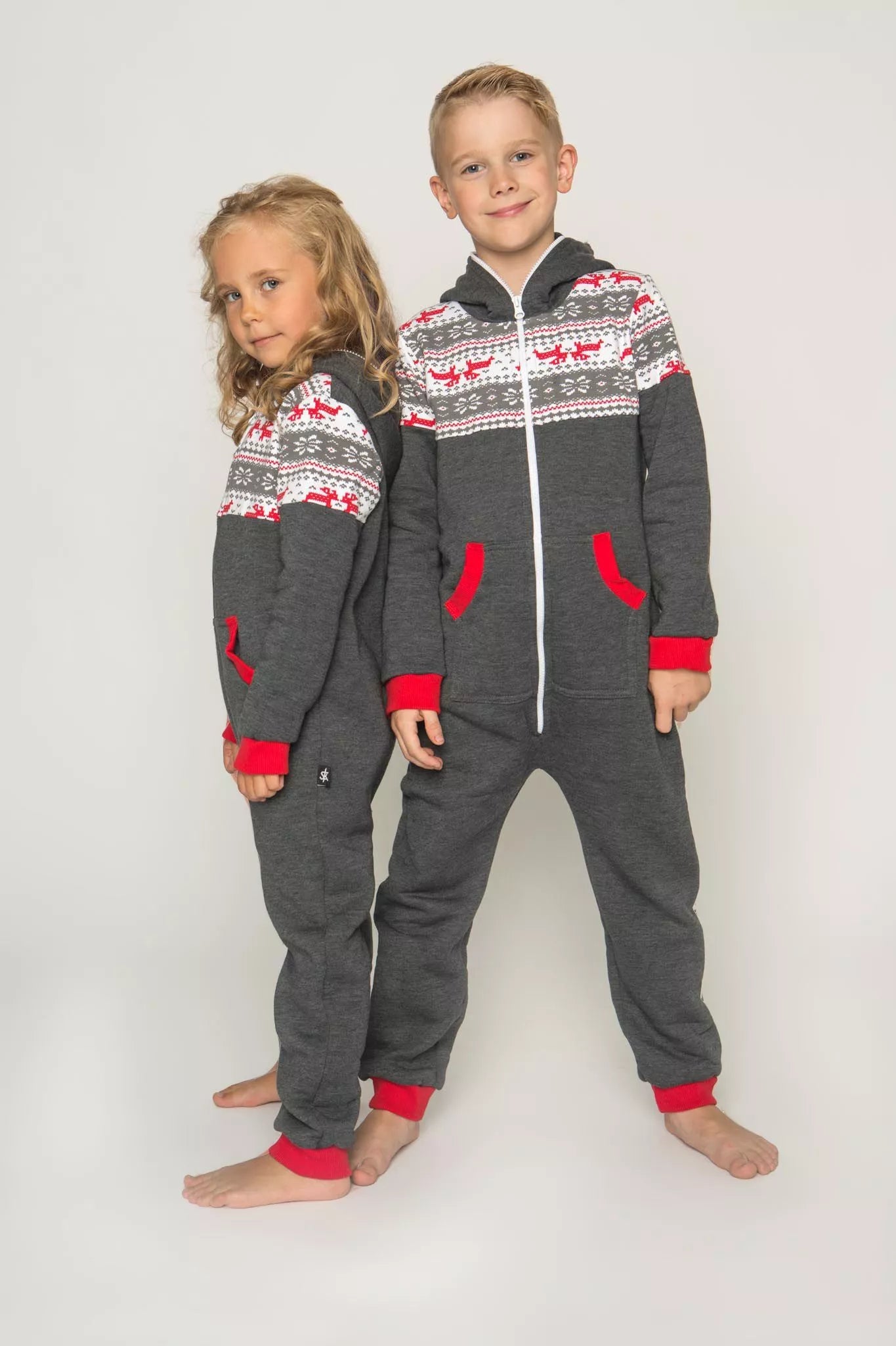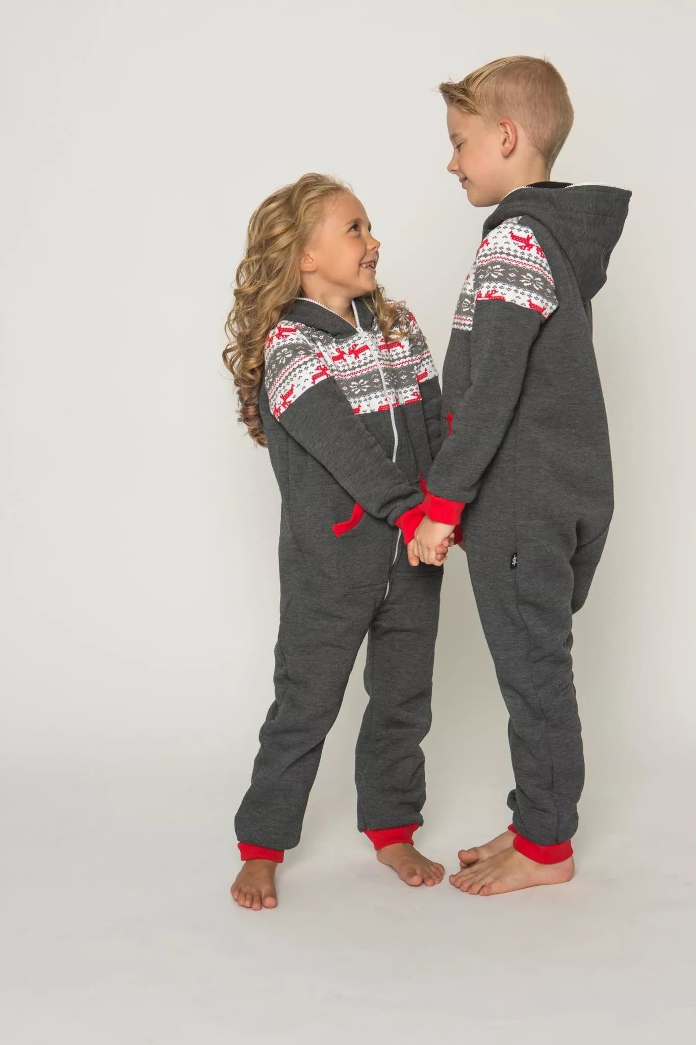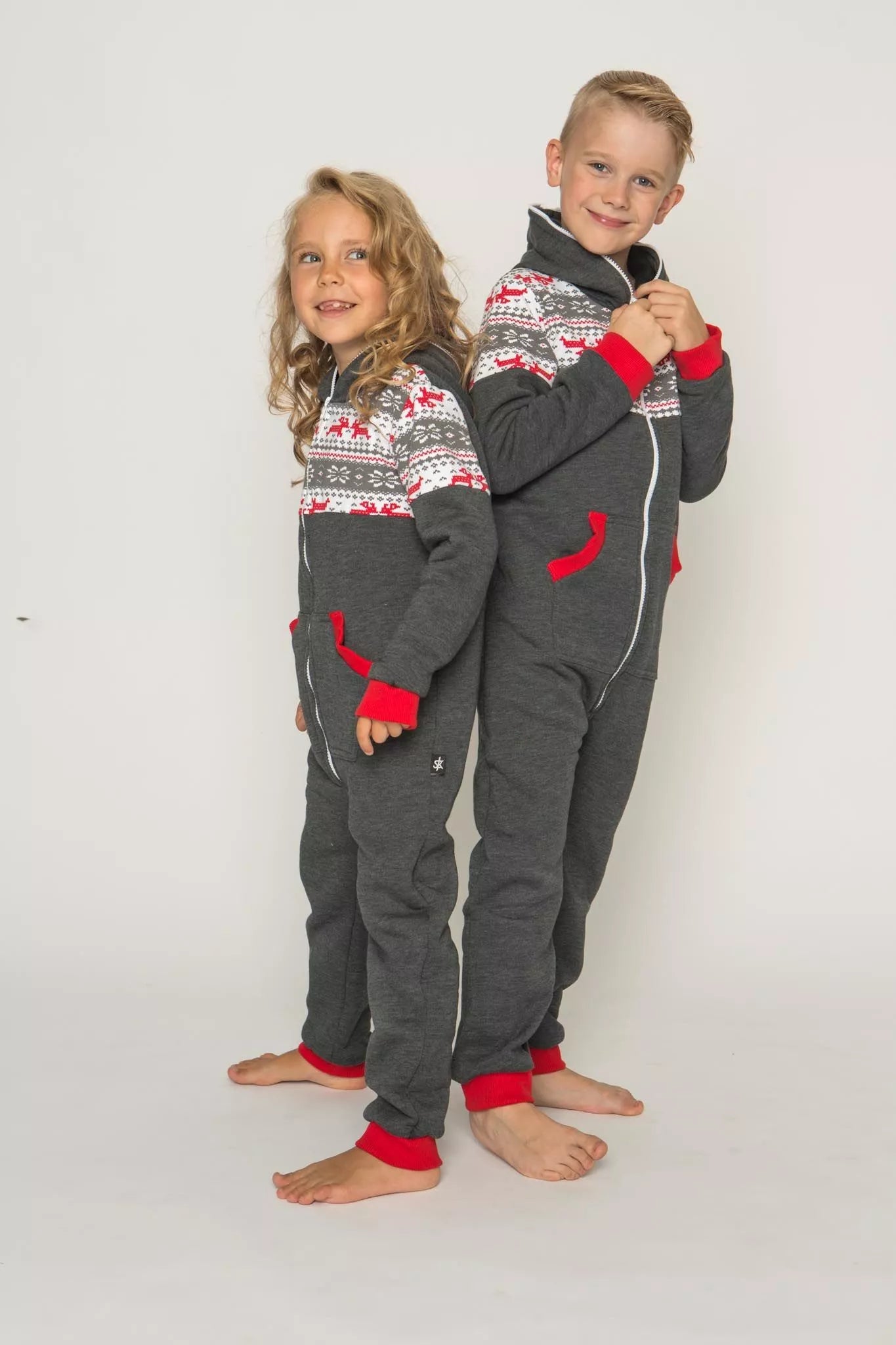 Sofa Killer grafito spalvos vaikiškas kombinezonas Nordic su elniukų ir snaigių aplikacija, raudoni rankogaliais, tiek mergaitėms tiek berniukams, skirtas visai šeimai. Jums tereikia pasirinki rankogalių spalvą (jei neradote pageidaujamos spalvos susiekite), vaiko ar visos šeimos iniviualumui pabrėžti (užsakant kombineonus šeimai suteikiame nuolaidas - susisiekite). Priekyje kišenės apsiūtos rankogalių medžiaga. Medžiagos vidinė dalis su tankiu pūkeliu, kuris sukuria įpatingą šilumos jausmą ir norą vilkėti kombinezoną nuolat. Sofa Killer kombinezonų modeliai nevaržo judesių, tad puikiai tinka tiek pasyviam tiek aktyviam poilsiui, net miegui. Galite rinktis iš plačios dydžių skalės, o pats rūbas tradiciškai turi būti laisvas, tad kiek didesnis dydis puikiai tiks. Dekoruota Sofa Killer logotipu po kišene. turime nuotraukose matomus modelius.