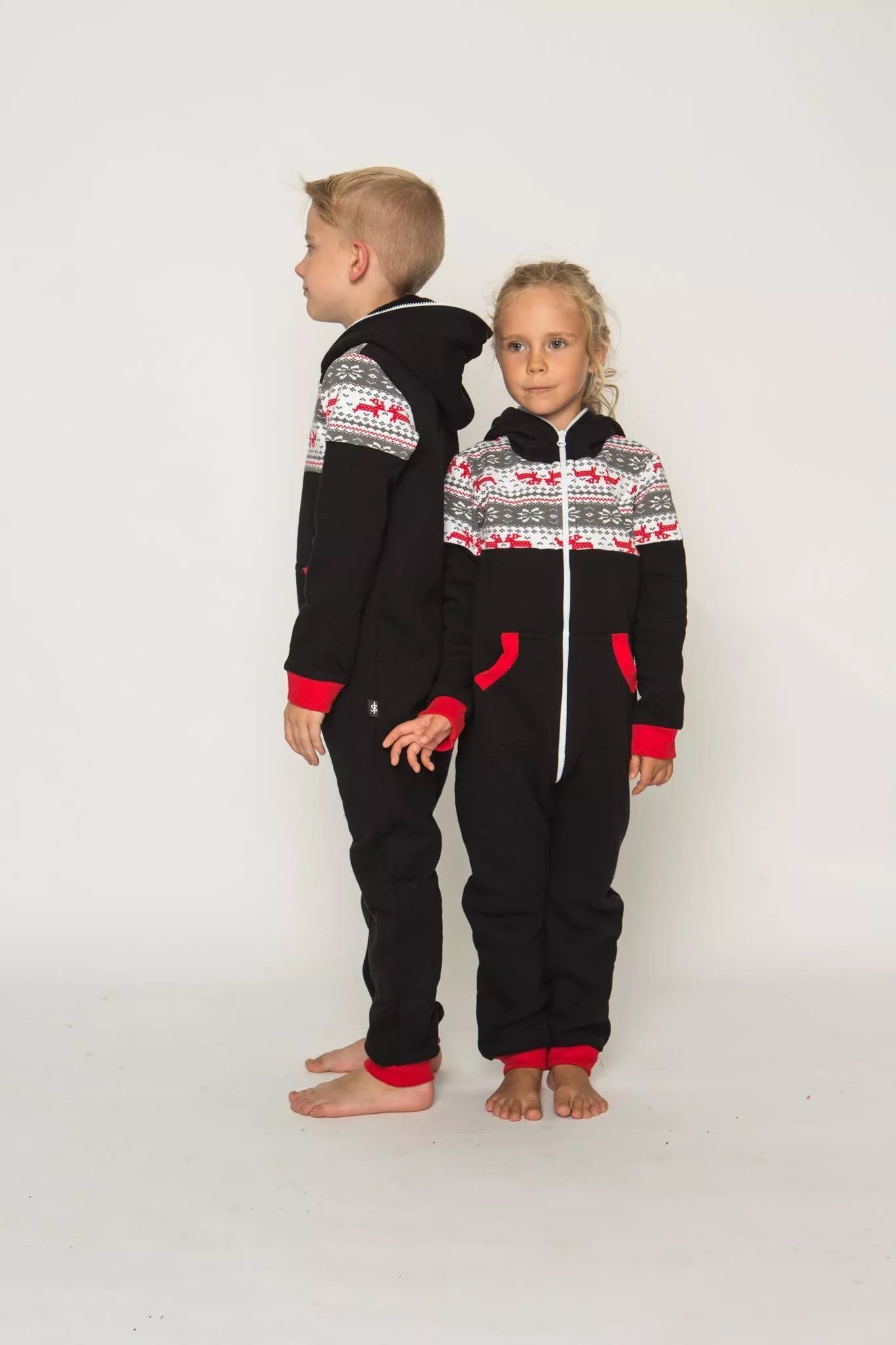 Sofa Killer juodas vaikiškas kombinezonas Nordic su elniukų ir snaigių aplikacija, raudoni rankogaliais, tiek mergaitėms tiek berniukams, skirtas visai šeimai. Jums tereikia pasirinki rankogalių spalvą (jei neradote pageidaujamos spalvos susiekite), vaiko ar visos šeimos iniviualumui pabrėžti (užsakant kombineonus šeimai suteikiame nuolaidas - susisiekite). Priekyje kišenės apsiūtos rankogalių medžiaga. Medžiagos vidinė dalis su tankiu pūkeliu, kuris sukuria įpatingą šilumos jausmą ir norą vilkėti kombinezoną nuolat. Sofa Killer kombinezonų modeliai nevaržo judesių, tad puikiai tinka tiek pasyviam tiek aktyviam poilsiui, net miegui. Galite rinktis iš plačios dydžių skalės, o pats rūbas tradiciškai turi būti laisvas, tad kiek didesnis dydis puikiai tiks. Dekoruota Sofa Killer logotipu po kišene. turime nuotraukose matomus modelius.