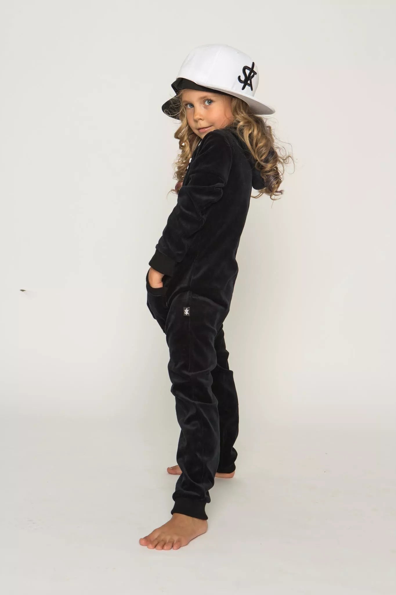Sofa Killer juodas vaikiškas veliūrinis kombinezonas