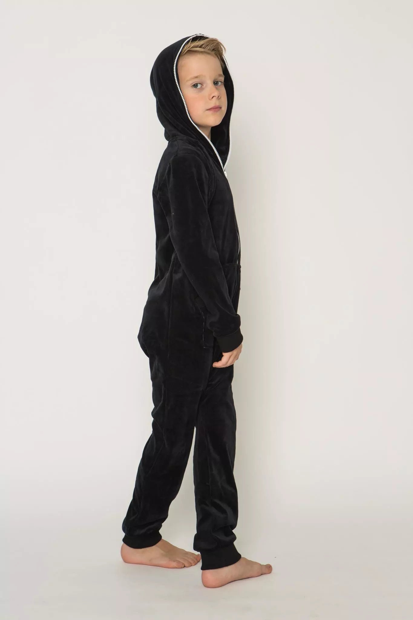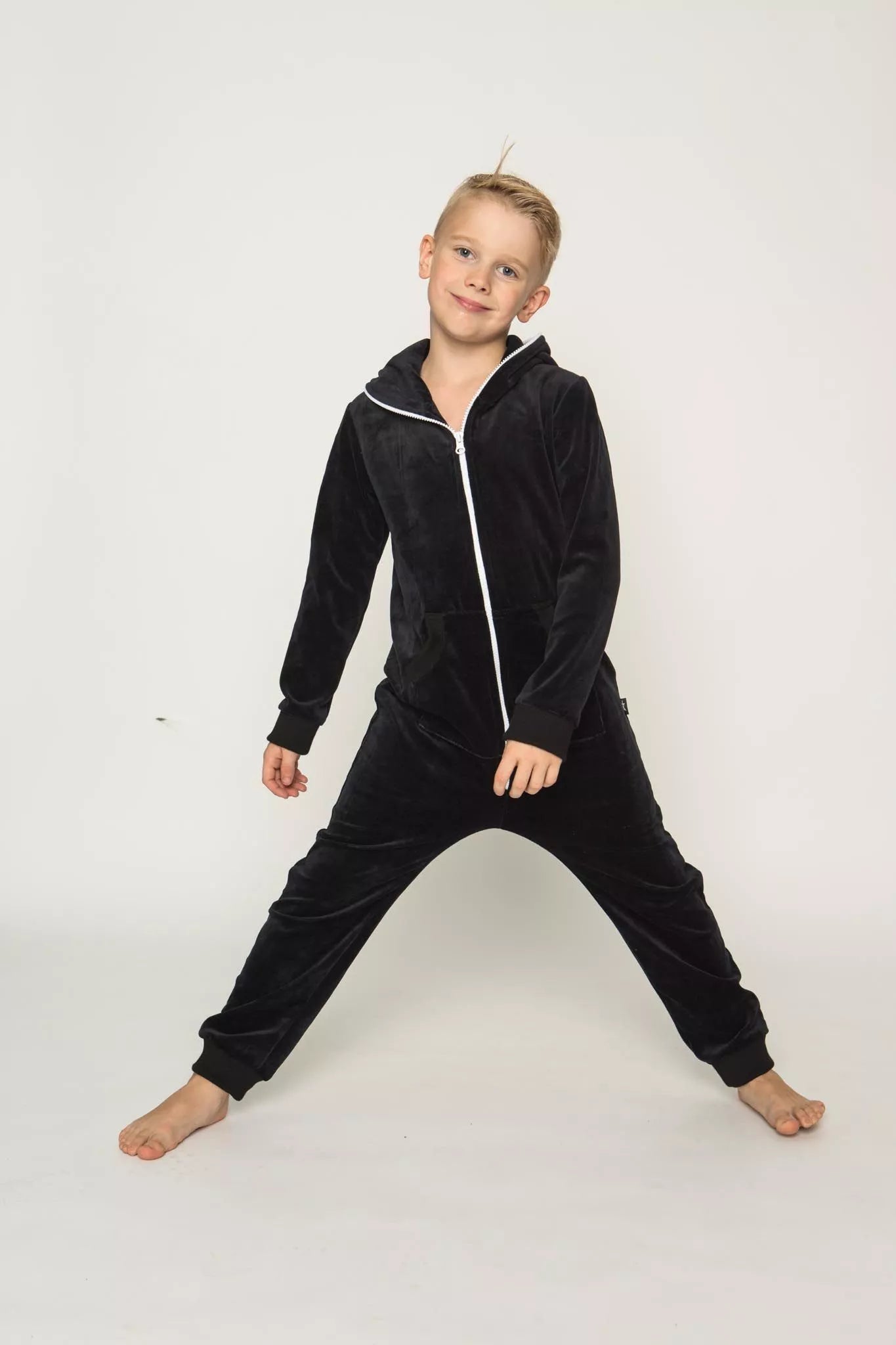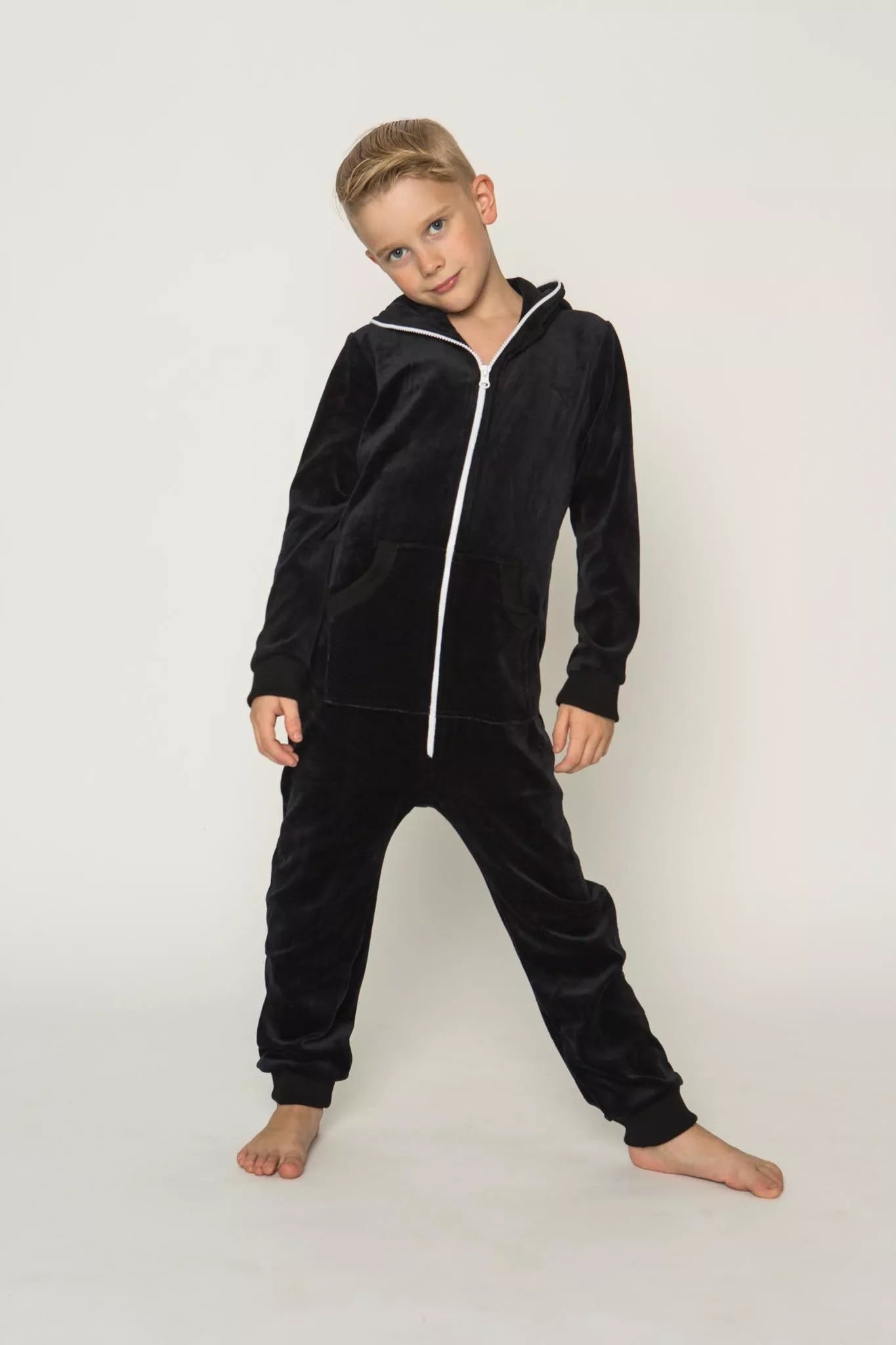 Šiltas jaukus vaikiškas juodas veliūrinis kombinezonas, tiek mergaitėms tiek berniukams, skirtas visai šeimai. Jei neradote pageidaujamos spalvos susiekite, kombinezono ir pačių rankogalių vaiko ar visos šeimos iniviualumui pabrėžti (užsakant kombineonus šeimai suteikiame nuolaidas - susisiekite). Priekyje kišenės apsiūtos rankogalių medžiaga. Medžiagos vidinė dalis su tankiu pūkeliu, kuris sukuria įpatingą šilumos jausmą ir norą vilkėti kombinezoną nuolat. Sofa Killer kombinezonų modeliai nevaržo judesių, tad puikiai tinka tiek pasyviam tiek aktyviam poilsiui, net miegui. Galite rinktis iš plačios dydžių skalės, o pats rūbas tradiciškai turi būti laisvas, tad kiek didesnis dydis puikiai tiks. Dekoruota Sofa Killer logotipu po kišene. turime nuotraukose matomus modelius.