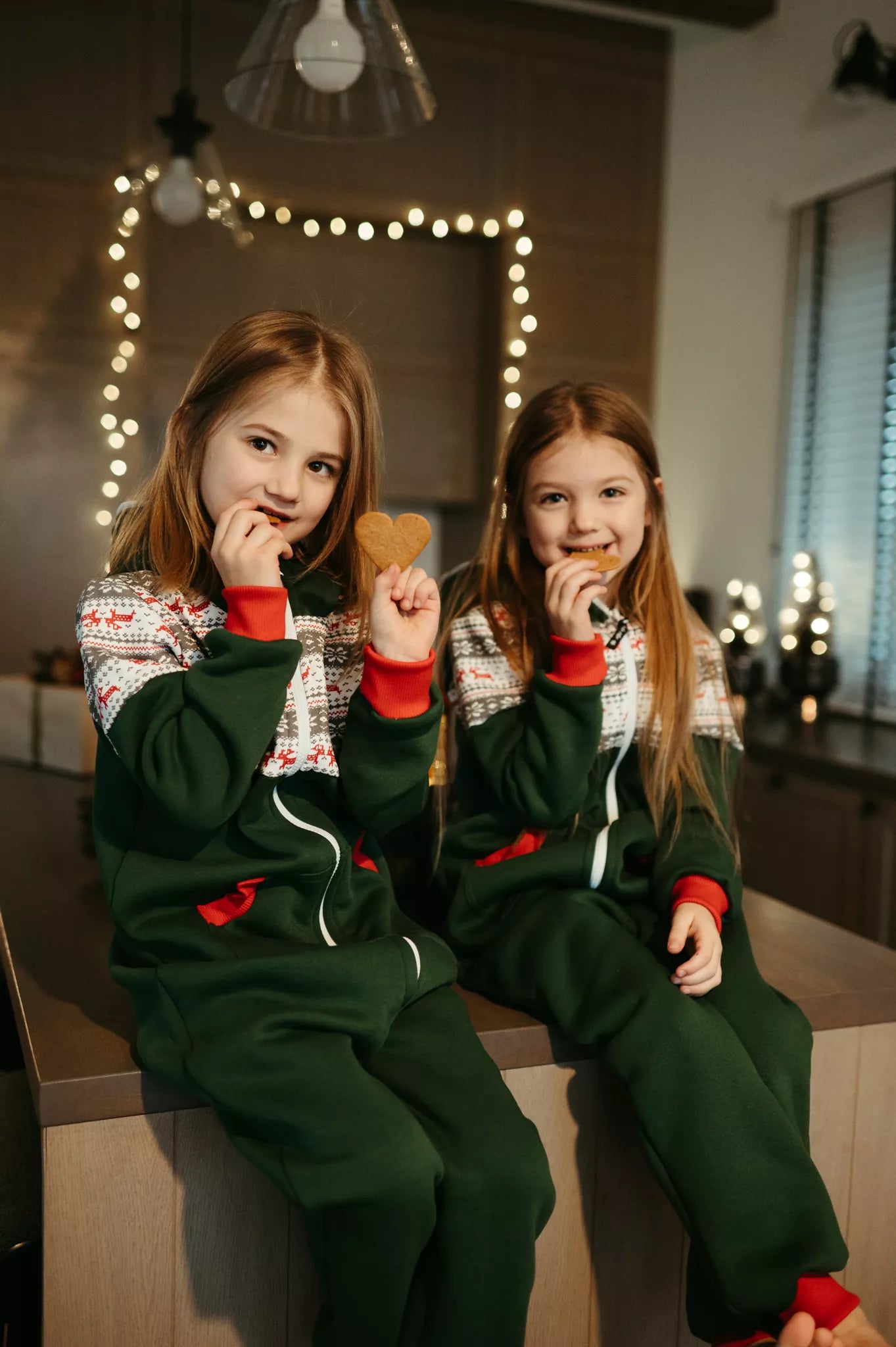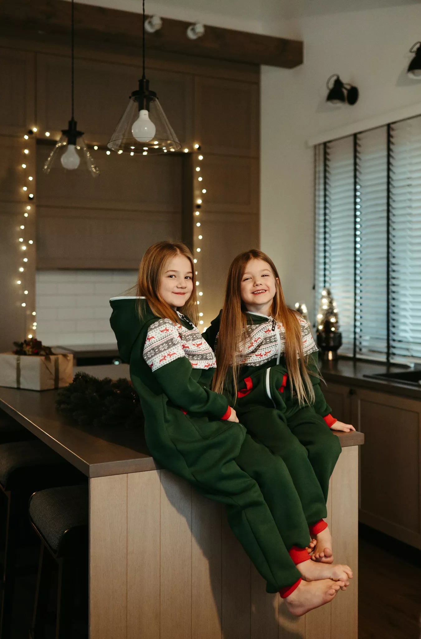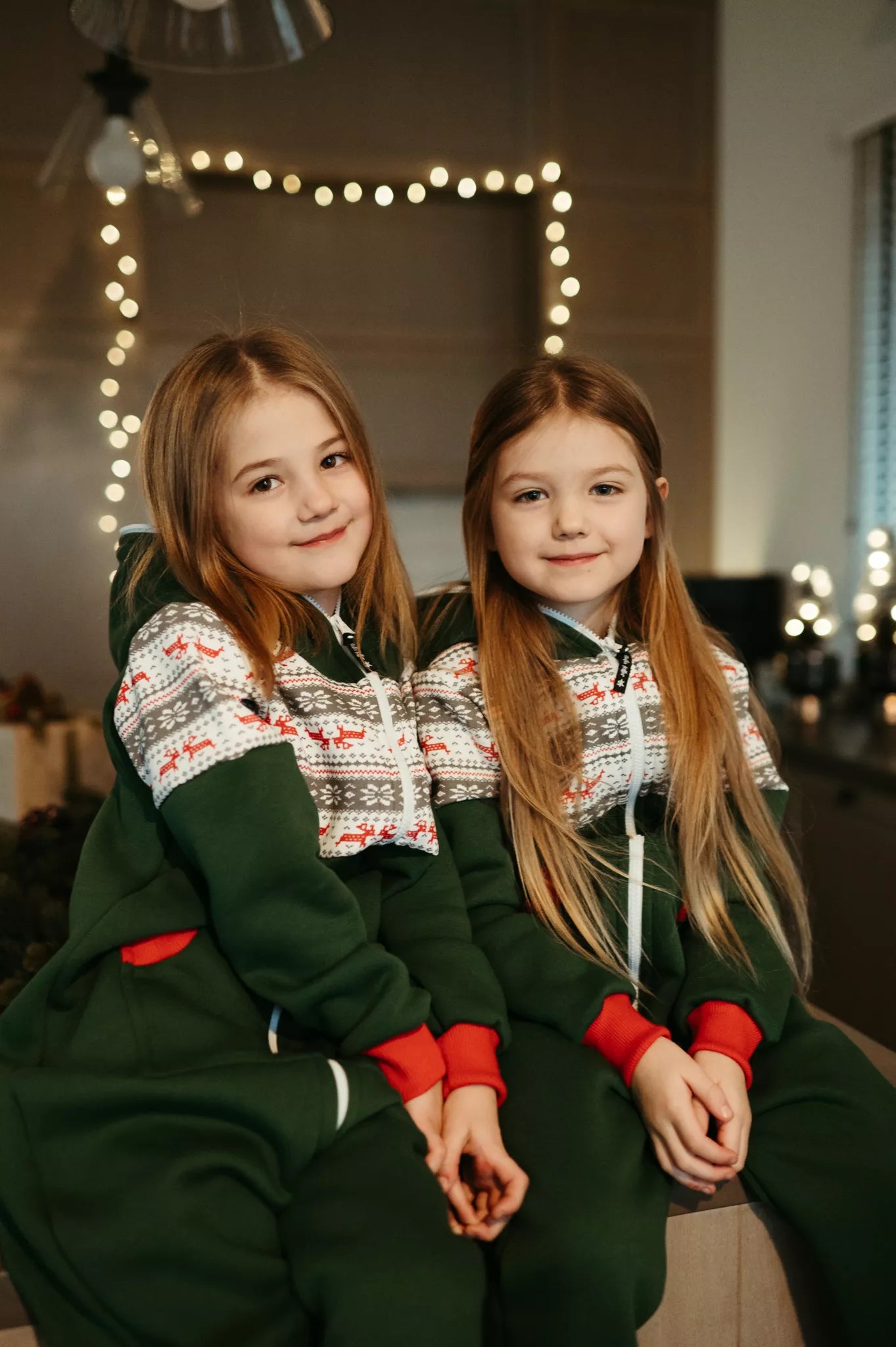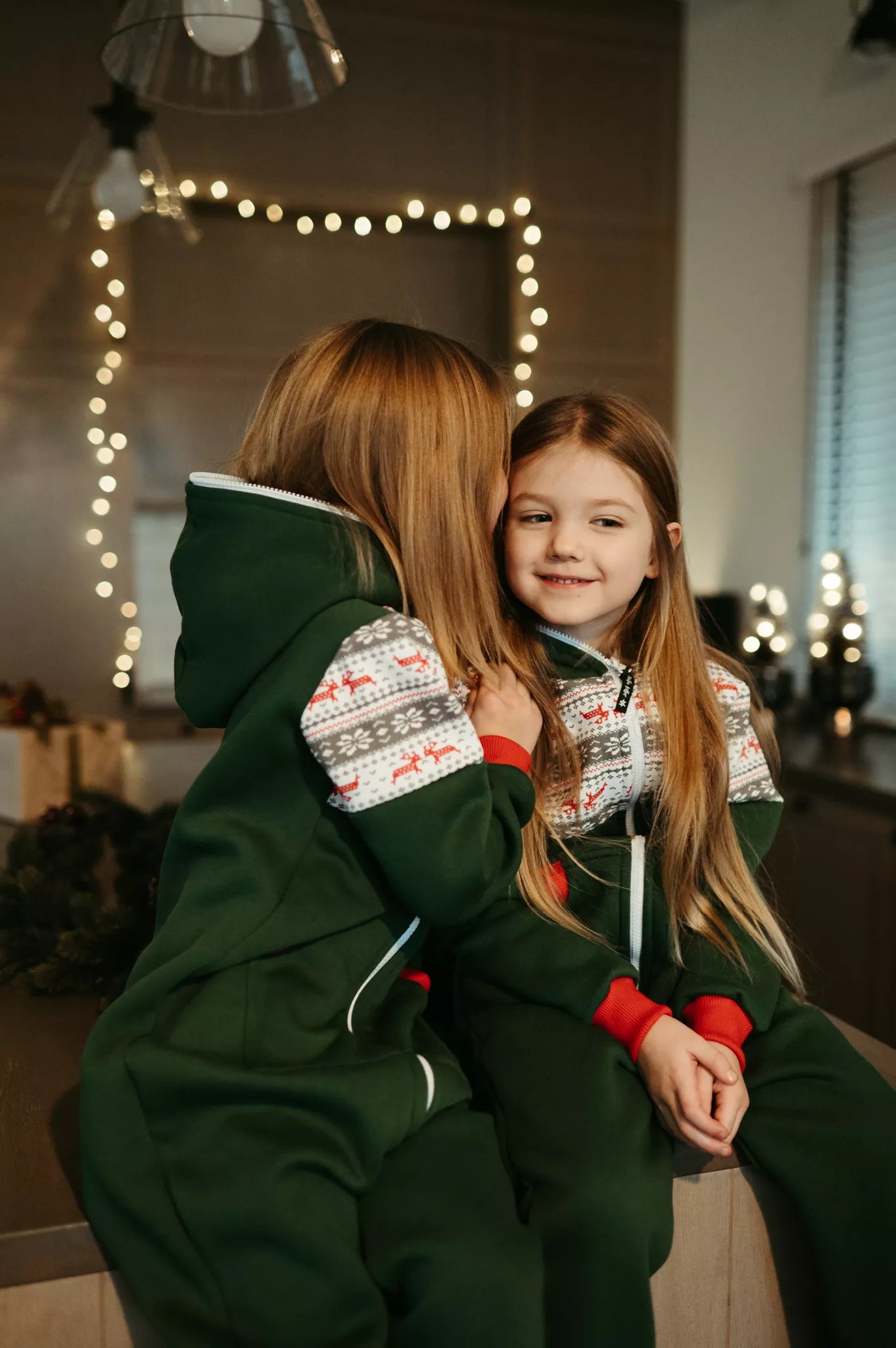 Sofa Killer tamsiai žalios spalvos vaikiškas kombinezonas Nordic su elniukų ir snaigių aplikacija, raudoni rankogaliais, tiek mergaitėms tiek berniukams, skirtas visai šeimai. Jums tereikia pasirinki rankogalių spalvą (jei neradote pageidaujamos spalvos susiekite), vaiko ar visos šeimos iniviualumui pabrėžti (užsakant kombineonus šeimai suteikiame nuolaidas - susisiekite). Priekyje kišenės apsiūtos rankogalių medžiaga. Medžiagos vidinė dalis su tankiu pūkeliu, kuris sukuria įpatingą šilumos jausmą ir norą vilkėti kombinezoną nuolat. Sofa Killer kombinezonų modeliai nevaržo judesių, tad puikiai tinka tiek pasyviam tiek aktyviam poilsiui, net miegui. Galite rinktis iš plačios dydžių skalės, o pats rūbas tradiciškai turi būti laisvas, tad kiek didesnis dydis puikiai tiks. Dekoruota Sofa Killer logotipu po kišene. turime nuotraukose matomus modelius.