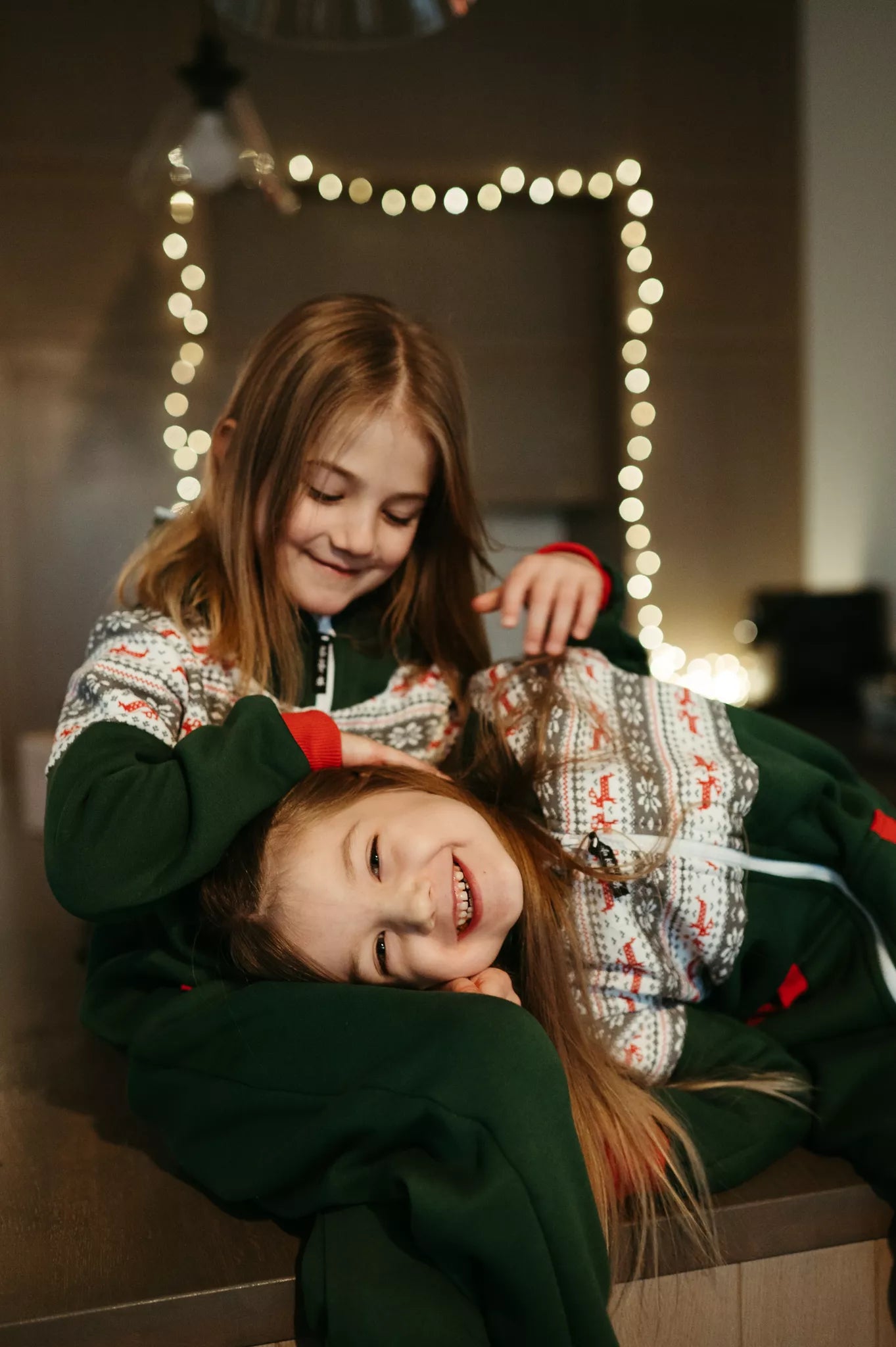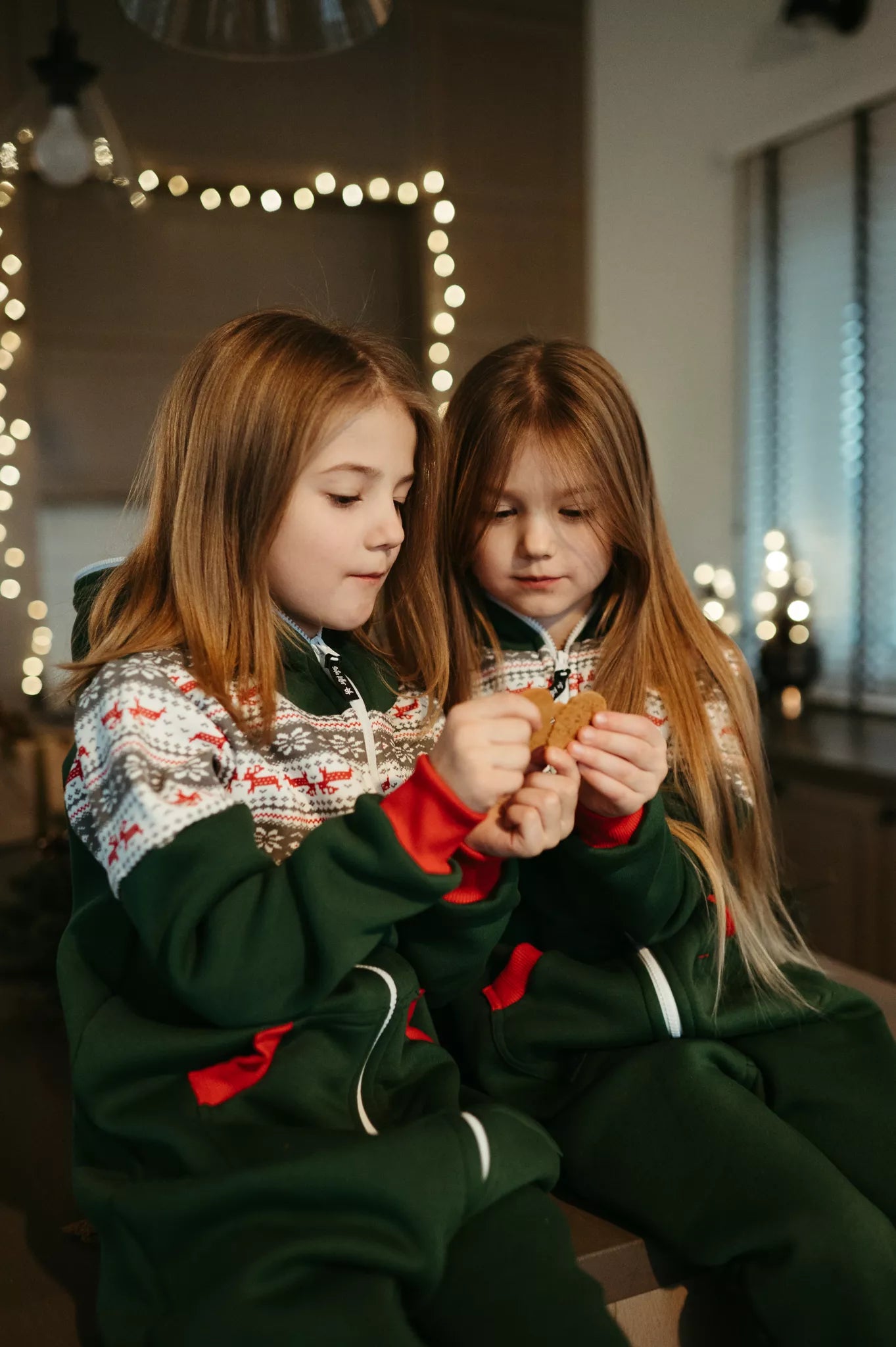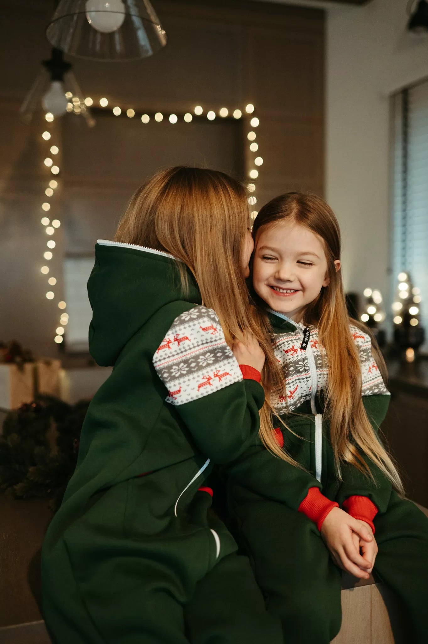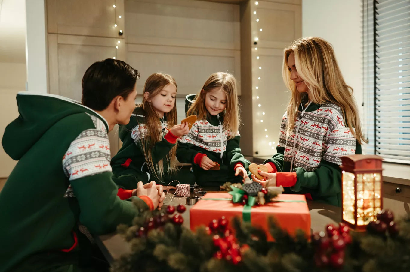 Sofa Killer tamsiai žalios spalvos vaikiškas kombinezonas Nordic su elniukų ir snaigių aplikacija, raudoni rankogaliais, tiek mergaitėms tiek berniukams, skirtas visai šeimai. Jums tereikia pasirinki rankogalių spalvą (jei neradote pageidaujamos spalvos susiekite), vaiko ar visos šeimos iniviualumui pabrėžti (užsakant kombineonus šeimai suteikiame nuolaidas - susisiekite). Priekyje kišenės apsiūtos rankogalių medžiaga. Medžiagos vidinė dalis su tankiu pūkeliu, kuris sukuria įpatingą šilumos jausmą ir norą vilkėti kombinezoną nuolat. Sofa Killer kombinezonų modeliai nevaržo judesių, tad puikiai tinka tiek pasyviam tiek aktyviam poilsiui, net miegui. Galite rinktis iš plačios dydžių skalės, o pats rūbas tradiciškai turi būti laisvas, tad kiek didesnis dydis puikiai tiks. Dekoruota Sofa Killer logotipu po kišene. turime nuotraukose matomus modelius.