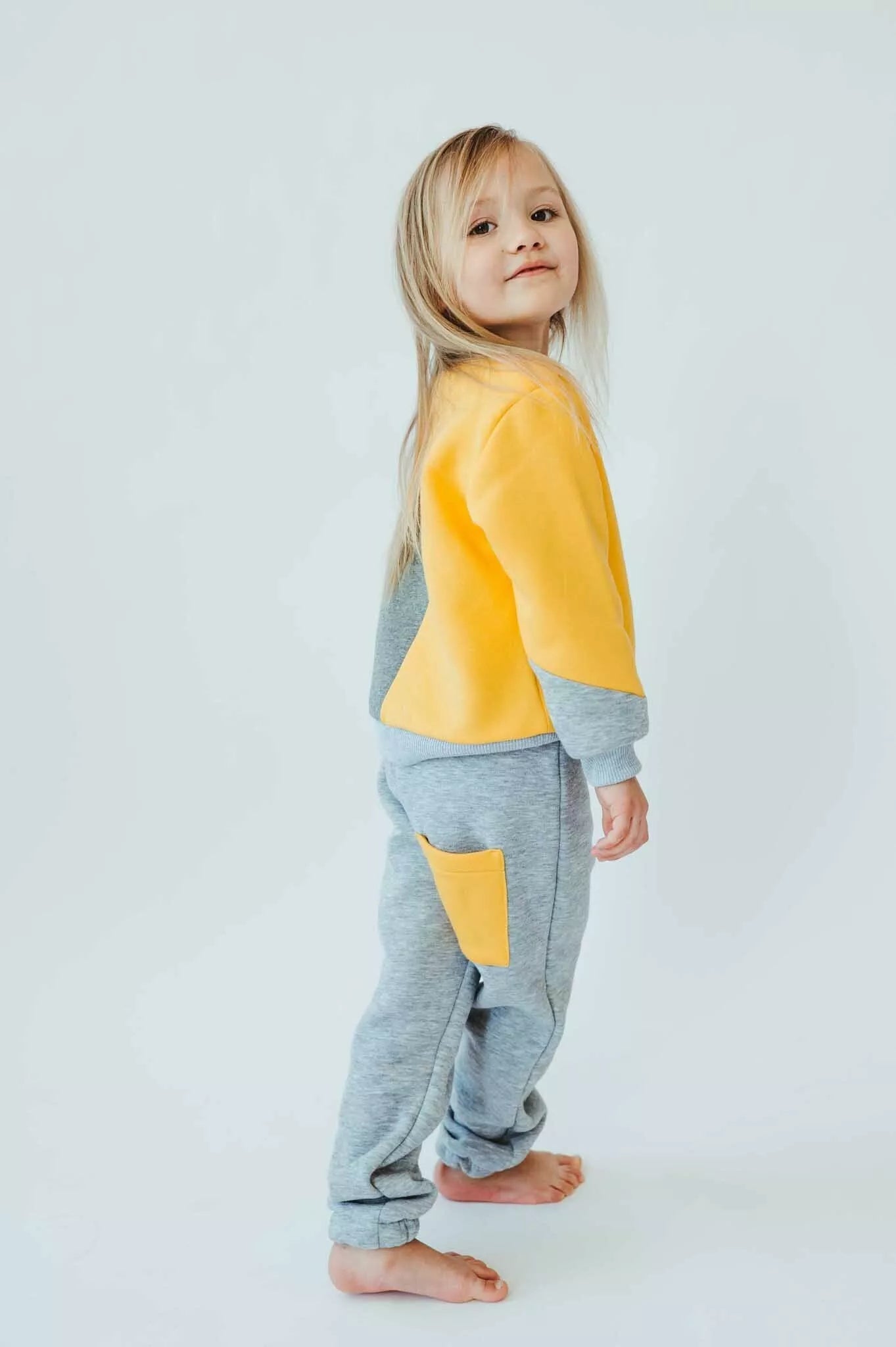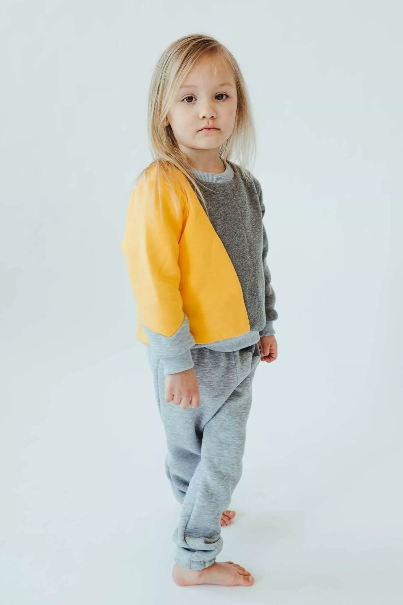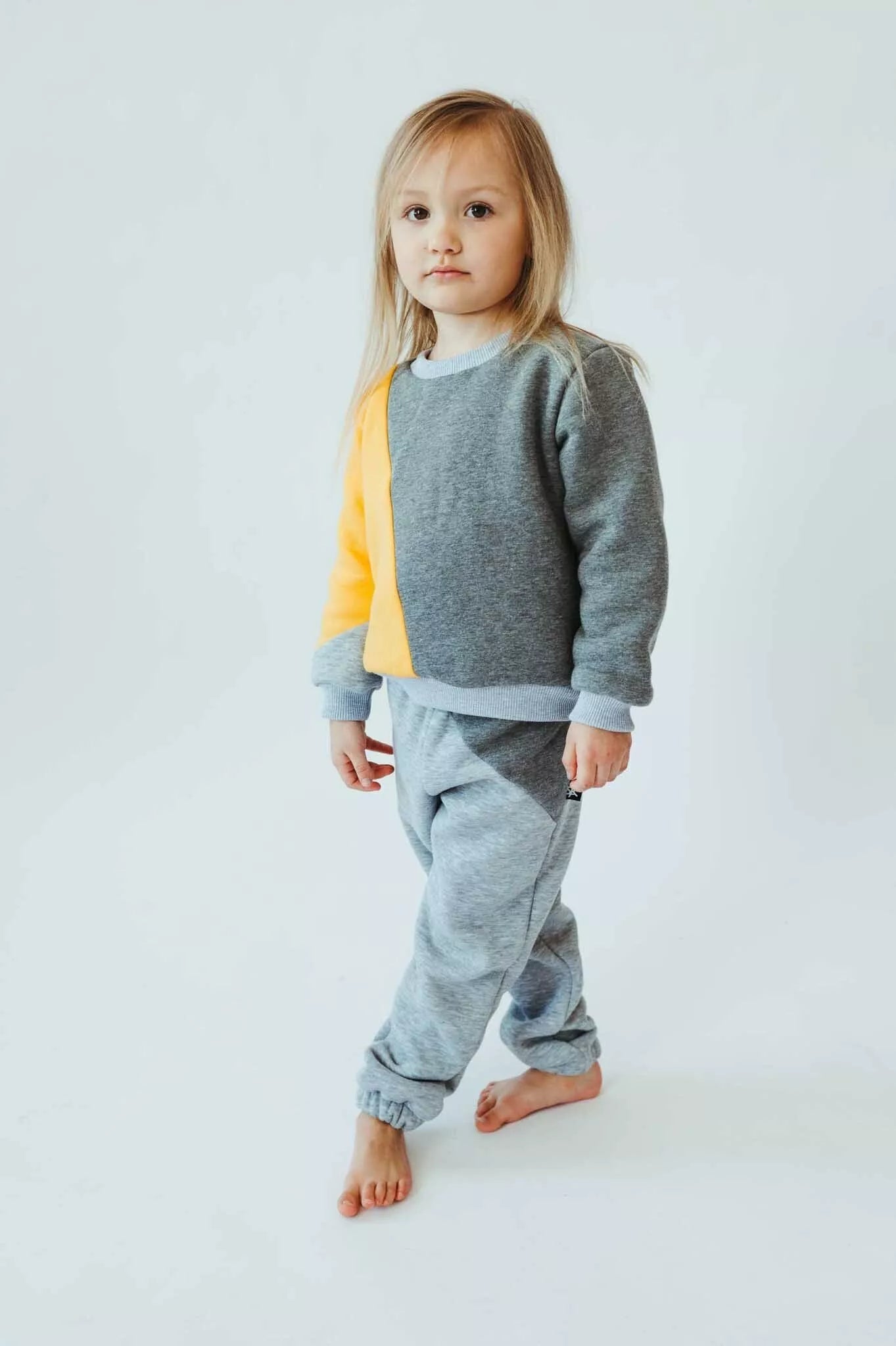 Šiltas jaukus vaikiškas trispalvis laisvalaikio džemperis, tiek mergaitėms tiek berniukams, skirtas visai šeimai. Geltona rankovė ir dvi pilkos spalvos (jei neradote pageidaujamos spalvos susiekite). Vaiko ar visos šeimos iniviualumui pabrėžti (užsakant laisvalaikio džemperių šeimai suteikiame nuolaidas - susisiekite). Medžiagos vidinė dalis su tankiu pūkeliu, kuris sukuria įpatingą šilumos jausmą ir norą vilkėti laisvalaikiodžemperį nuolat. Sofa Killer laisvalaikio modeliai nevaržo judesių, tad puikiai tinka tiek pasyviam tiek aktyviam poilsiui, net miegui. Galite rinktis iš plačios dydžių skalės, o pats rūbas tradiciškai turi būti laisvas, tad kiek didesnis dydis puikiai tiks.