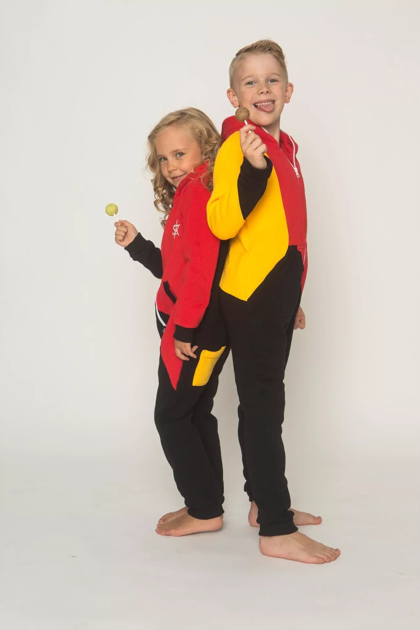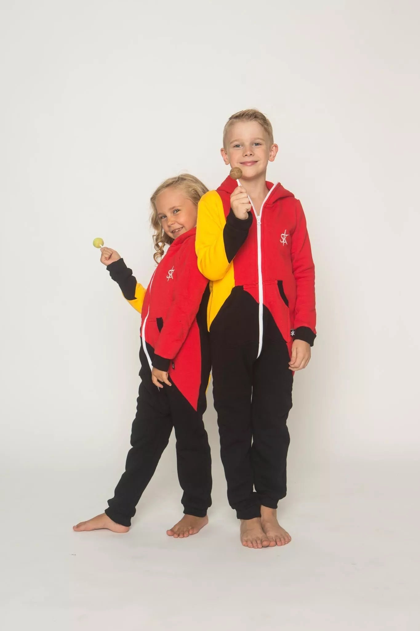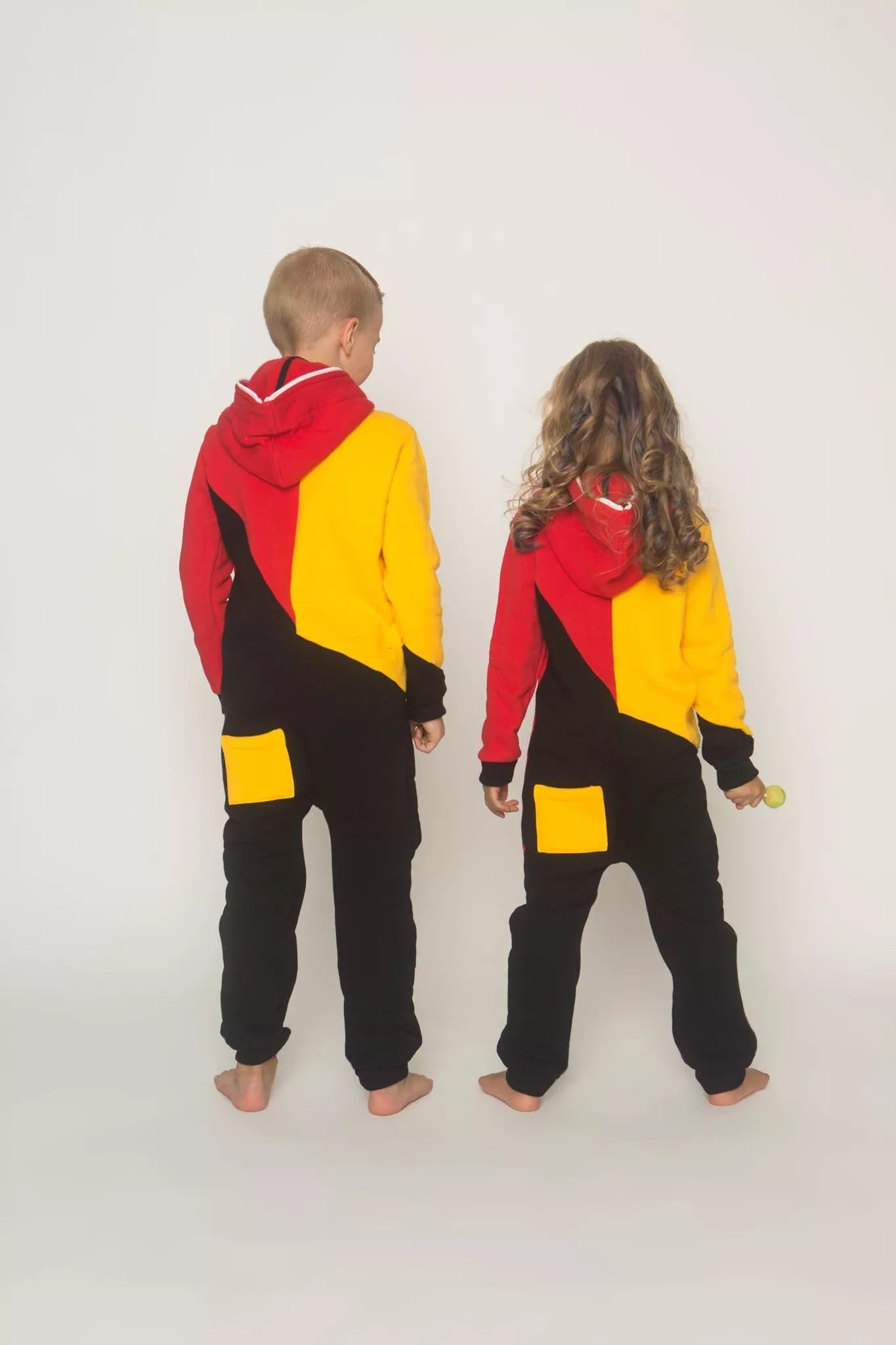 Šiltas jaukus vaikiškas trispalvis kombinezonas Bruber, tiek mergaitėms tiek berniukams, skirtas visai šeimai. Geltona rankovė, raudonas viršus ir juoda apačia, nugaroje geltona kišenė (jei neradote pageidaujamos spalvos susiekite) kombinezono ir pačių rankogalių. vaiko ar visos šeimos iniviualumui pabrėžti (užsakant kombineonus šeimai suteikiame nuolaidas - susisiekite). Priekyje kišenės apsiūtos rankogalių medžiaga. Medžiagos vidinė dalis su tankiu pūkeliu, kuris sukuria įpatingą šilumos jausmą ir norą vilkėti kombinezoną nuolat. Sofa Killer kombinezonų modeliai nevaržo judesių, tad puikiai tinka tiek pasyviam tiek aktyviam poilsiui, net miegui. Galite rinktis iš plačios dydžių skalės, o pats rūbas tradiciškai turi būti laisvas, tad kiek didesnis dydis puikiai tiks. Dekoruota Sofa Killer logotipu po kišene.