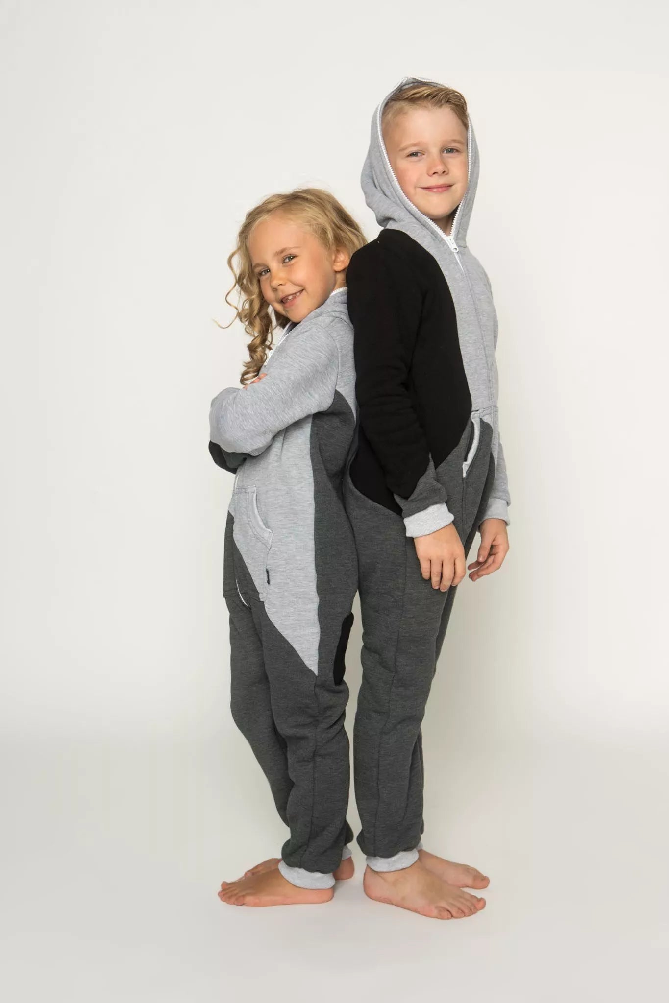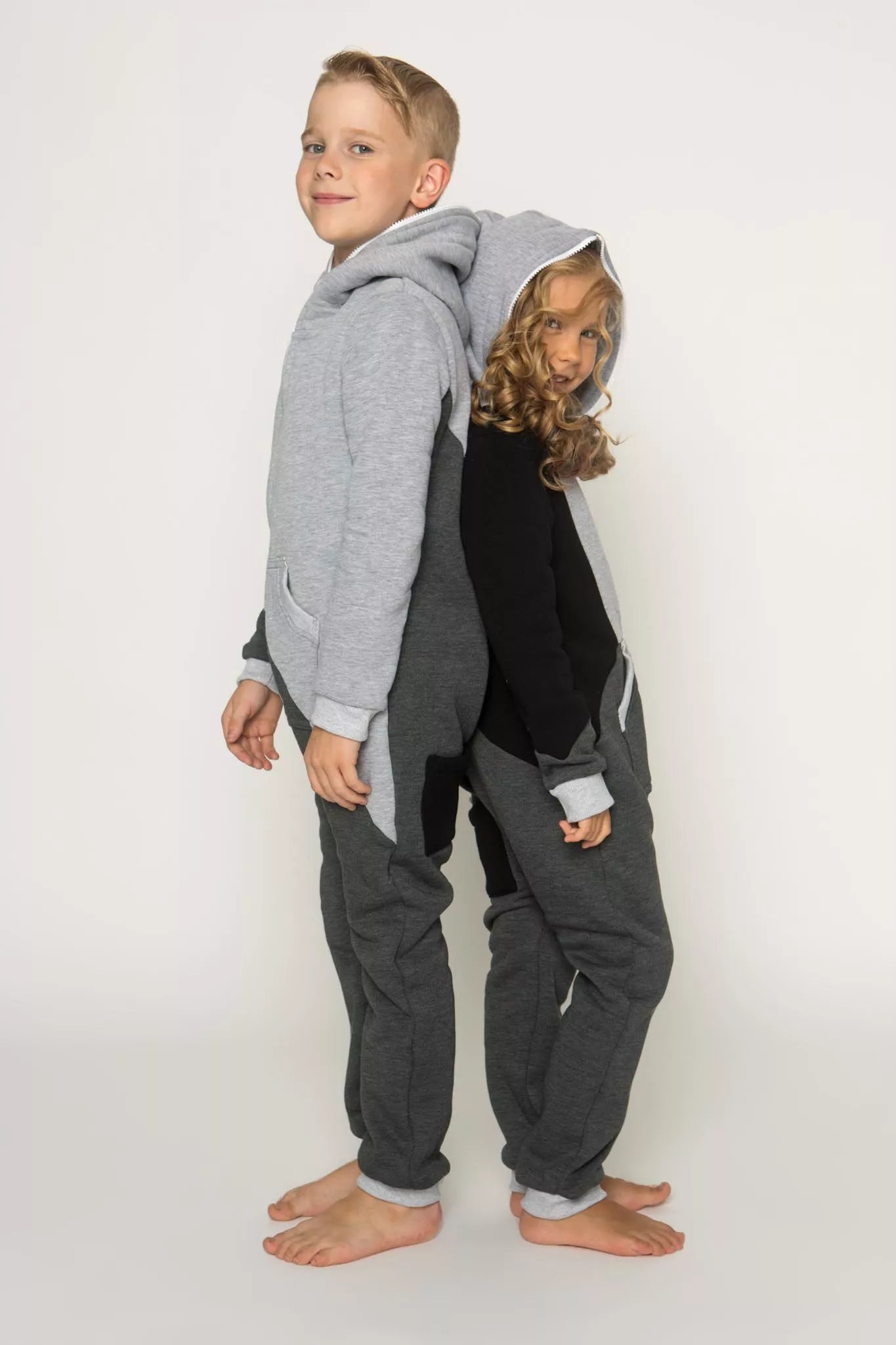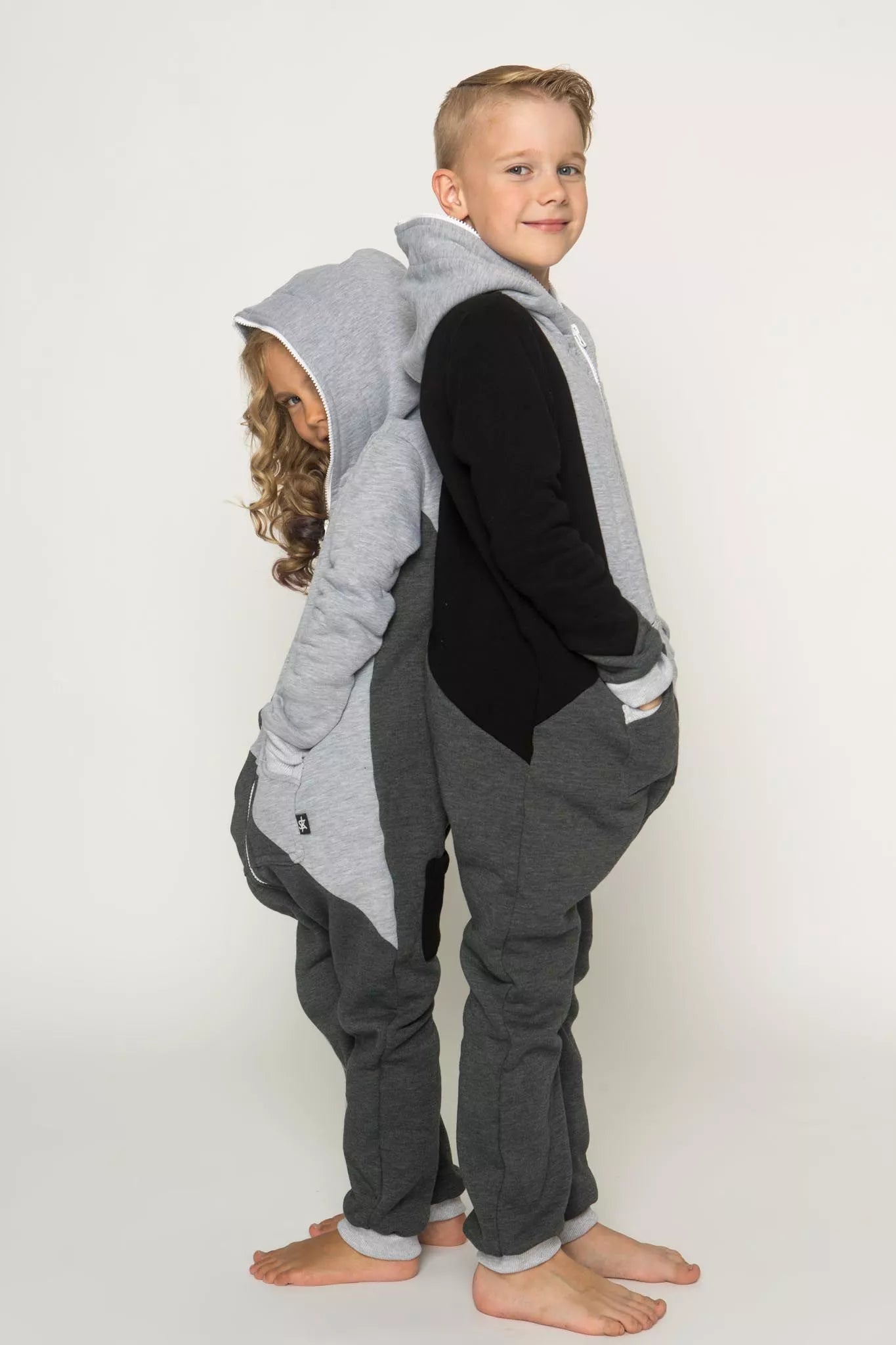 Šiltas jaukus vaikiškas trispalvis kombinezonas Grey, tiek mergaitėms tiek berniukams, skirtas visai šeimai. Juoda rankovė, šviesiai pilkas viršus ir tamsiai pilka apačia, pilki rnakogaliai, nugaroje juoda kišenė (jei neradote pageidaujamos spalvos susiekite) kombinezono ir pačių rankogalių. vaiko ar visos šeimos iniviualumui pabrėžti (užsakant kombineonus šeimai suteikiame nuolaidas - susisiekite). Priekyje kišenės apsiūtos rankogalių medžiaga. Medžiagos vidinė dalis su tankiu pūkeliu, kuris sukuria įpatingą šilumos jausmą ir norą vilkėti kombinezoną nuolat. Sofa Killer kombinezonų modeliai nevaržo judesių, tad puikiai tinka tiek pasyviam tiek aktyviam poilsiui, net miegui. Galite rinktis iš plačios dydžių skalės, o pats rūbas tradiciškai turi būti laisvas, tad kiek didesnis dydis puikiai tiks. Dekoruota Sofa Killer logotipu po kišene.