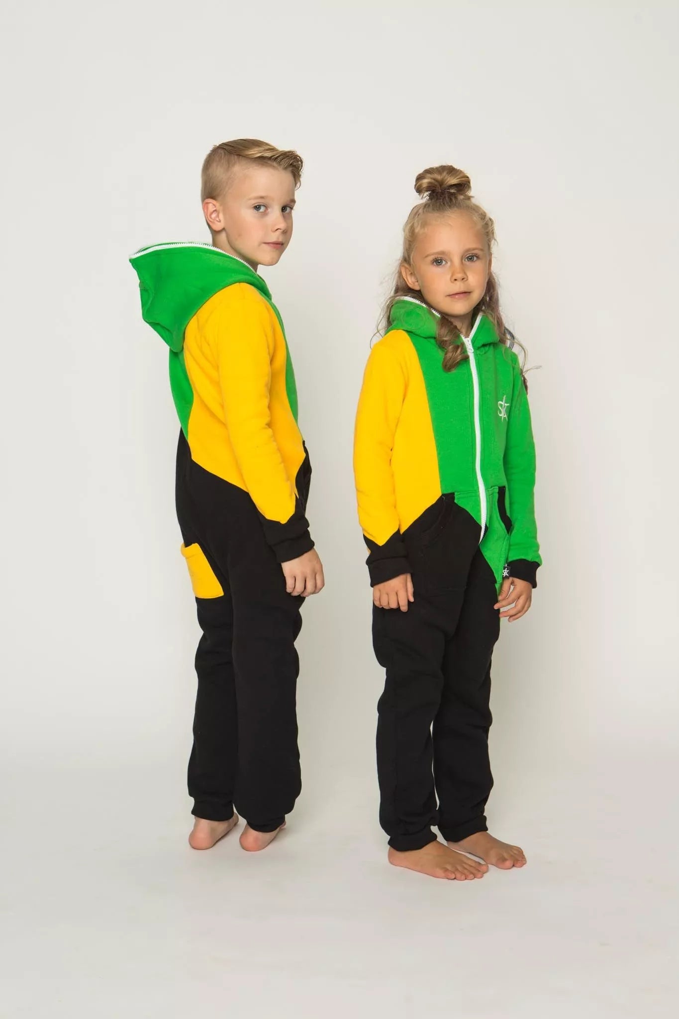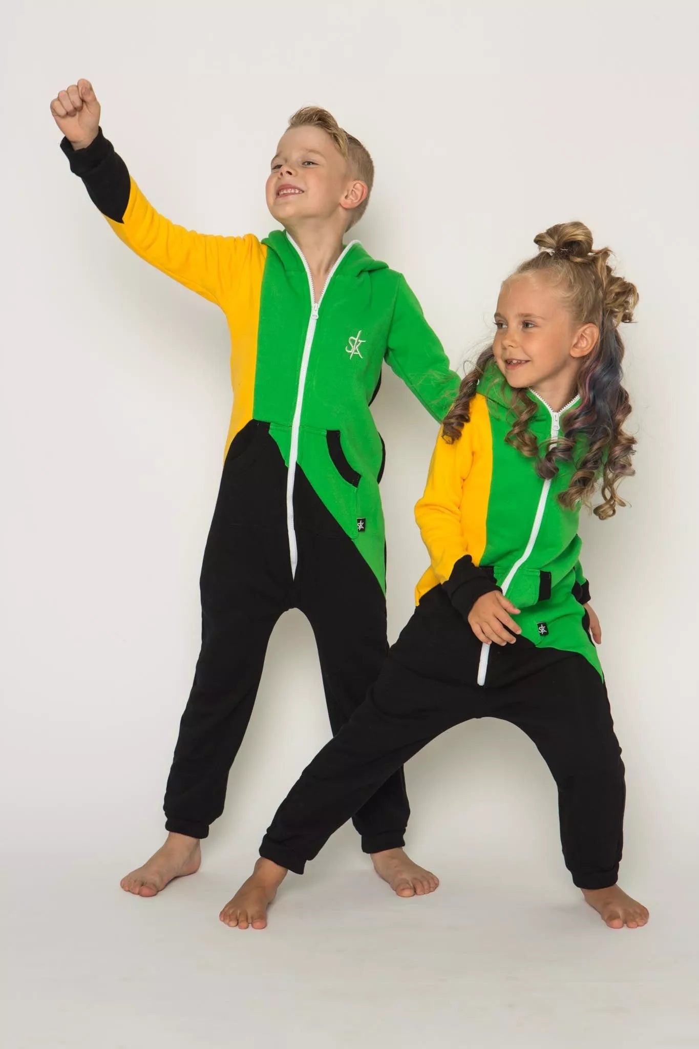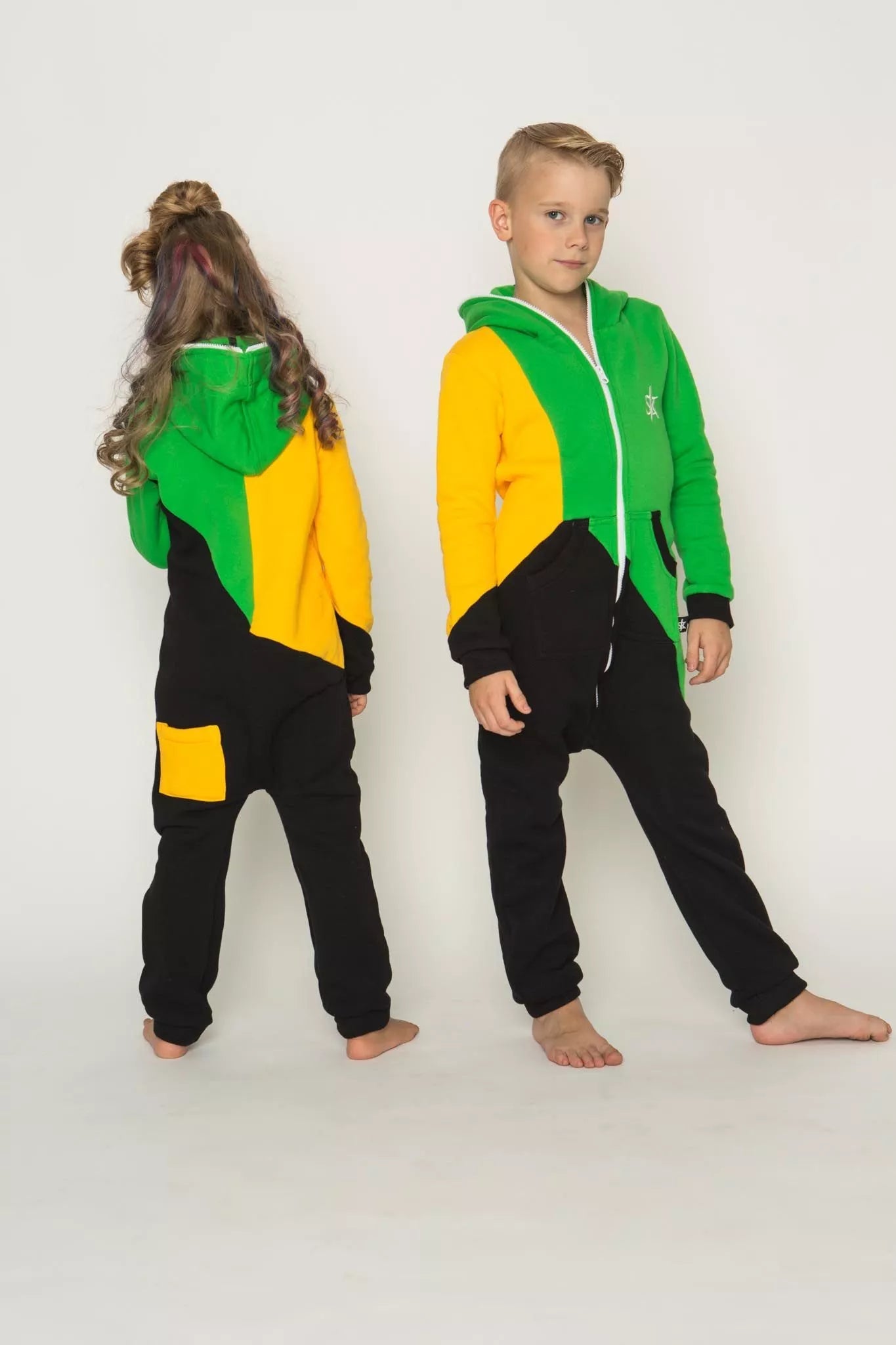 Šiltas jaukus vaikiškas trispalvis kombinezonas Jamaica, tiek mergaitėms tiek berniukams, skirtas visai šeimai. Geltona rankovė, žalias viršus ir juoda apačia, nugaroje geltona kišenė (jei neradote pageidaujamos spalvos susiekite) kombinezono ir pačių rankogalių. vaiko ar visos šeimos iniviualumui pabrėžti (užsakant kombineonus šeimai suteikiame nuolaidas - susisiekite). Priekyje kišenės apsiūtos rankogalių medžiaga. Medžiagos vidinė dalis su tankiu pūkeliu, kuris sukuria įpatingą šilumos jausmą ir norą vilkėti kombinezoną nuolat. Sofa Killer kombinezonų modeliai nevaržo judesių, tad puikiai tinka tiek pasyviam tiek aktyviam poilsiui, net miegui. Galite rinktis iš plačios dydžių skalės, o pats rūbas tradiciškai turi būti laisvas, tad kiek didesnis dydis puikiai tiks. Dekoruota Sofa Killer logotipu po kišene.