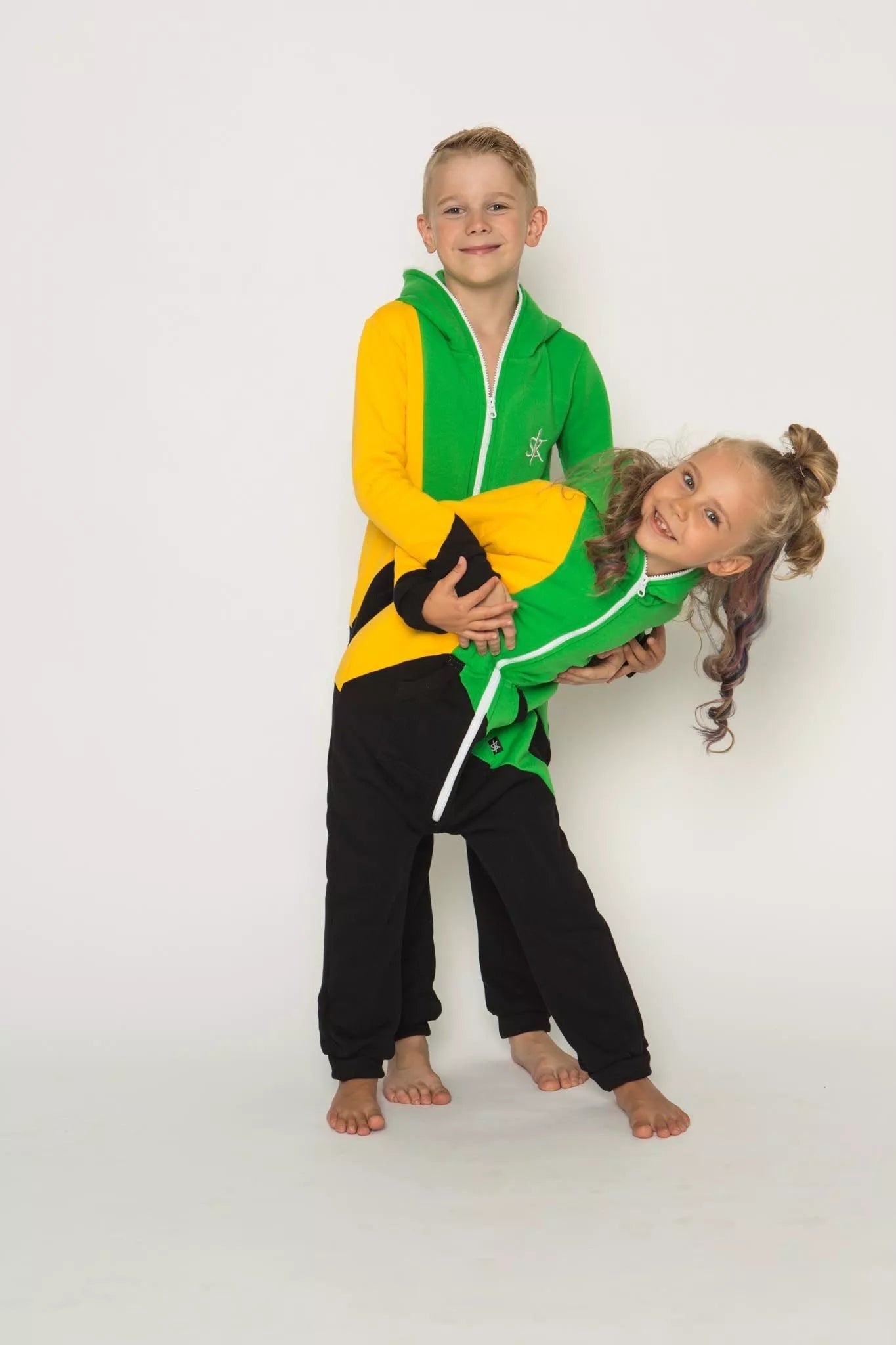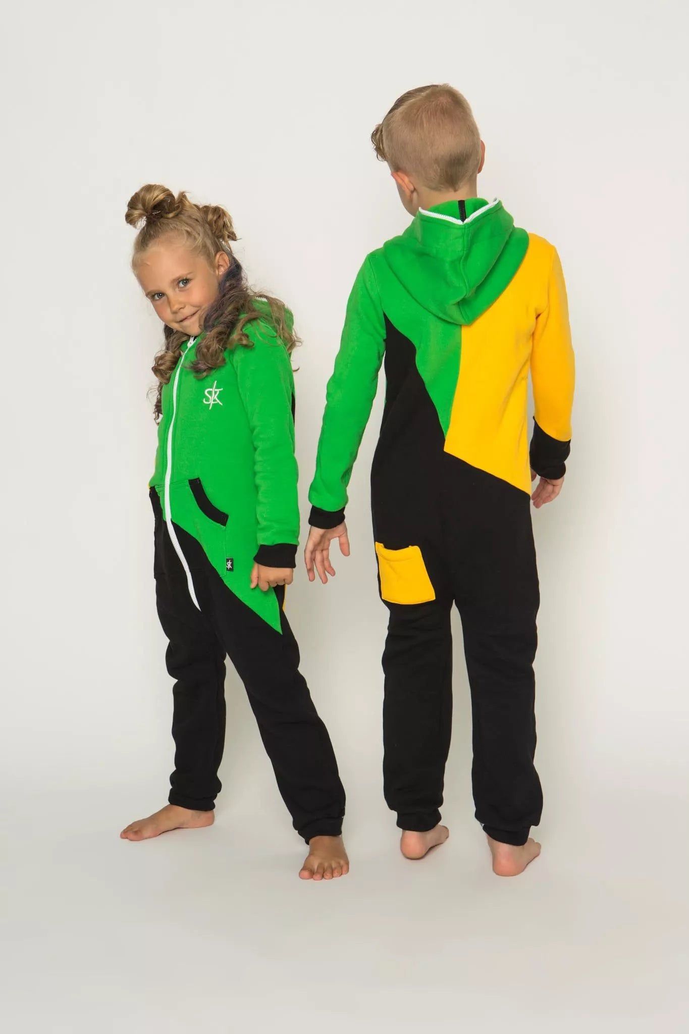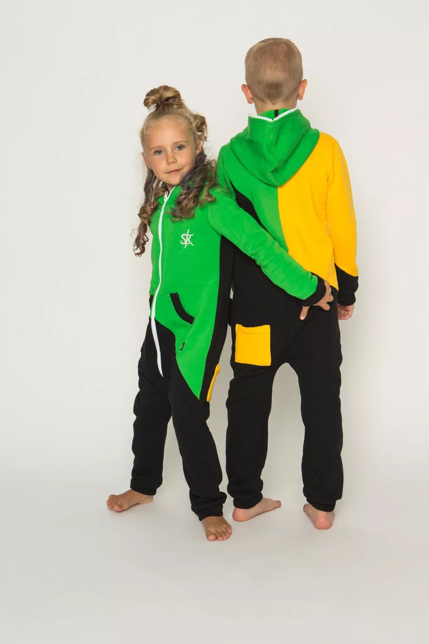 Šiltas jaukus vaikiškas trispalvis kombinezonas Jamaica, tiek mergaitėms tiek berniukams, skirtas visai šeimai. Geltona rankovė, žalias viršus ir juoda apačia, nugaroje geltona kišenė (jei neradote pageidaujamos spalvos susiekite) kombinezono ir pačių rankogalių. vaiko ar visos šeimos iniviualumui pabrėžti (užsakant kombineonus šeimai suteikiame nuolaidas - susisiekite). Priekyje kišenės apsiūtos rankogalių medžiaga. Medžiagos vidinė dalis su tankiu pūkeliu, kuris sukuria įpatingą šilumos jausmą ir norą vilkėti kombinezoną nuolat. Sofa Killer kombinezonų modeliai nevaržo judesių, tad puikiai tinka tiek pasyviam tiek aktyviam poilsiui, net miegui. Galite rinktis iš plačios dydžių skalės, o pats rūbas tradiciškai turi būti laisvas, tad kiek didesnis dydis puikiai tiks. Dekoruota Sofa Killer logotipu po kišene.