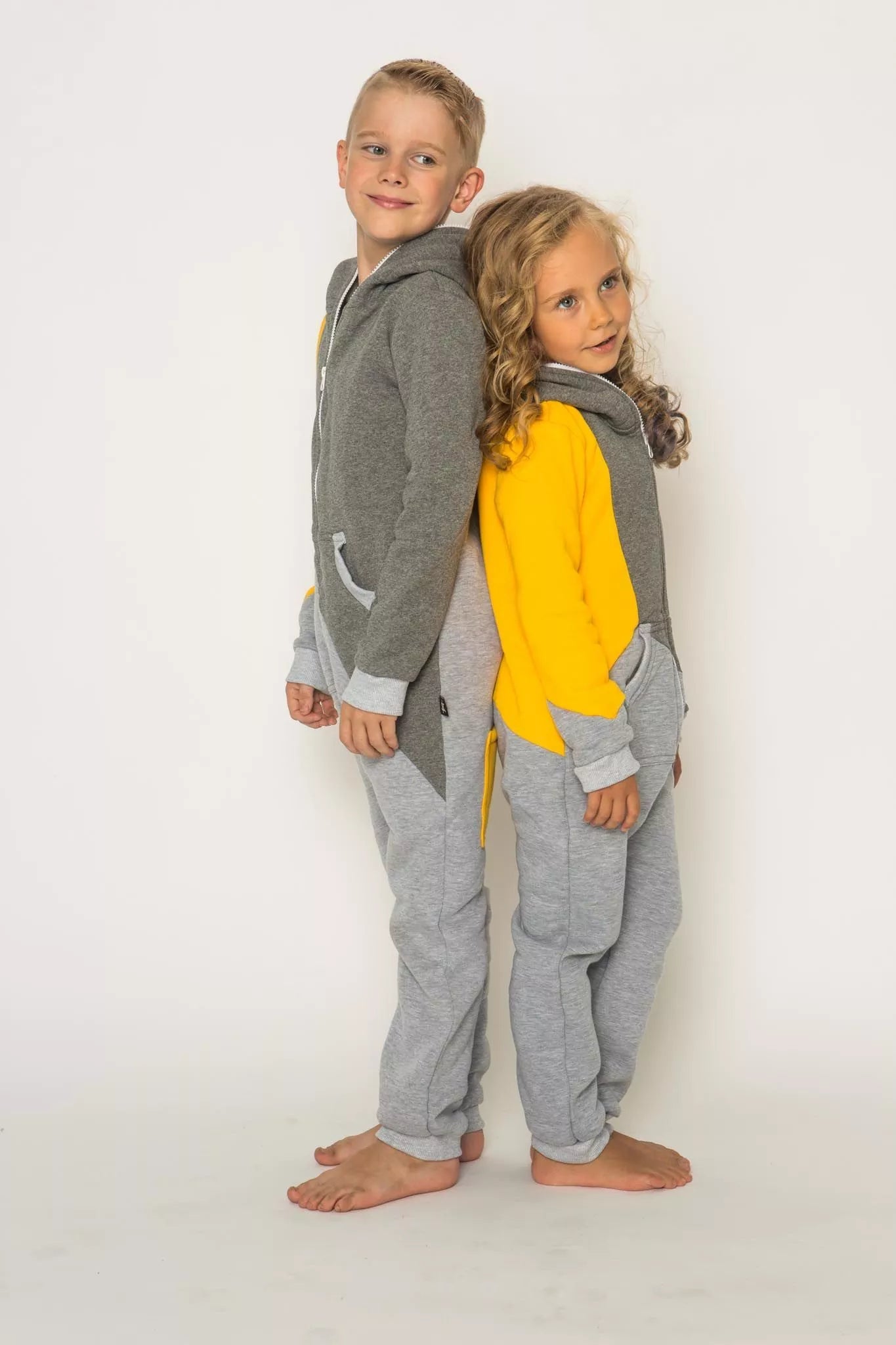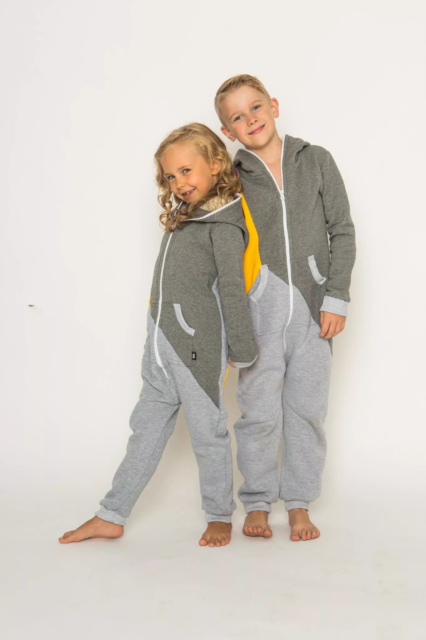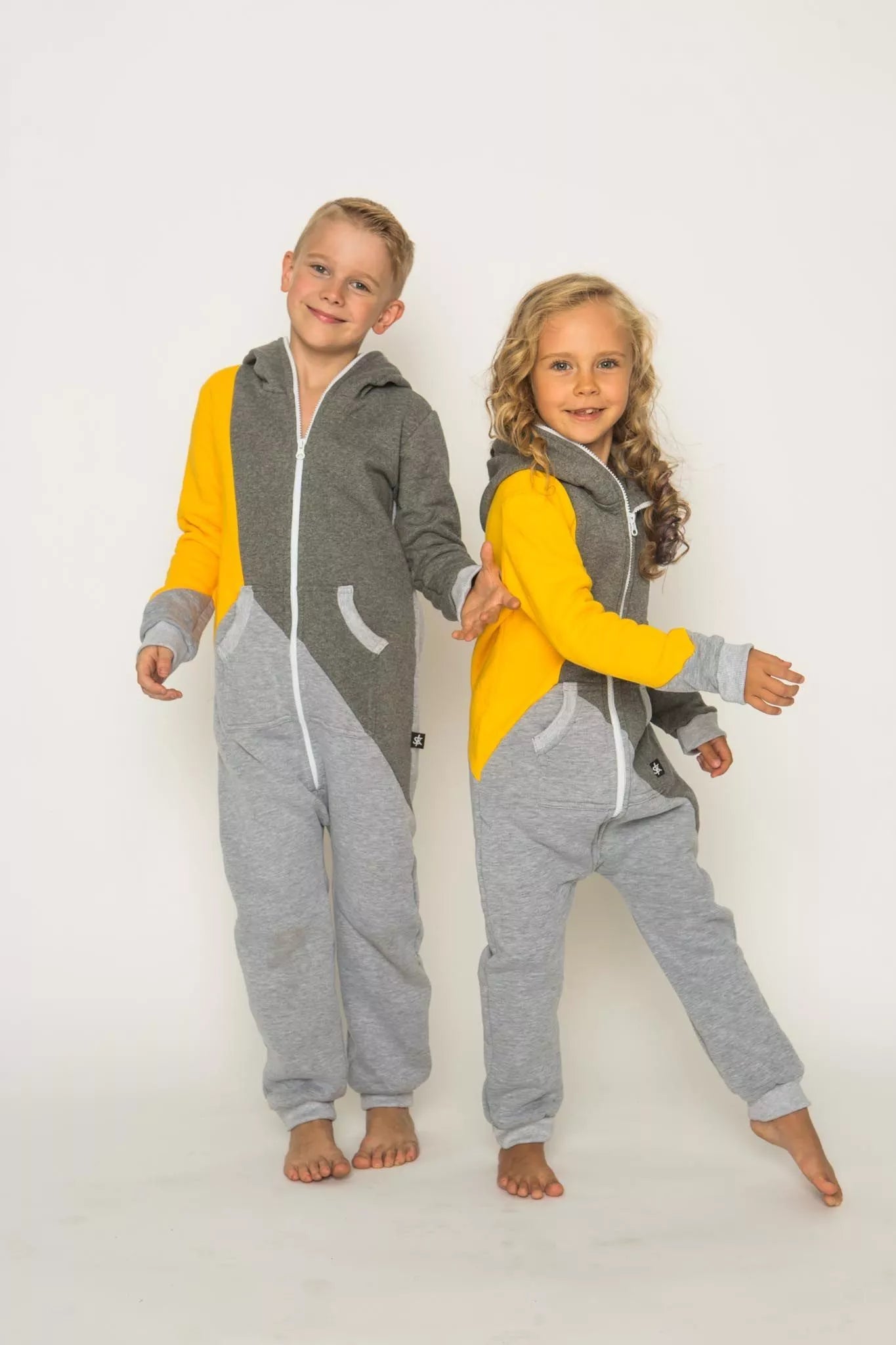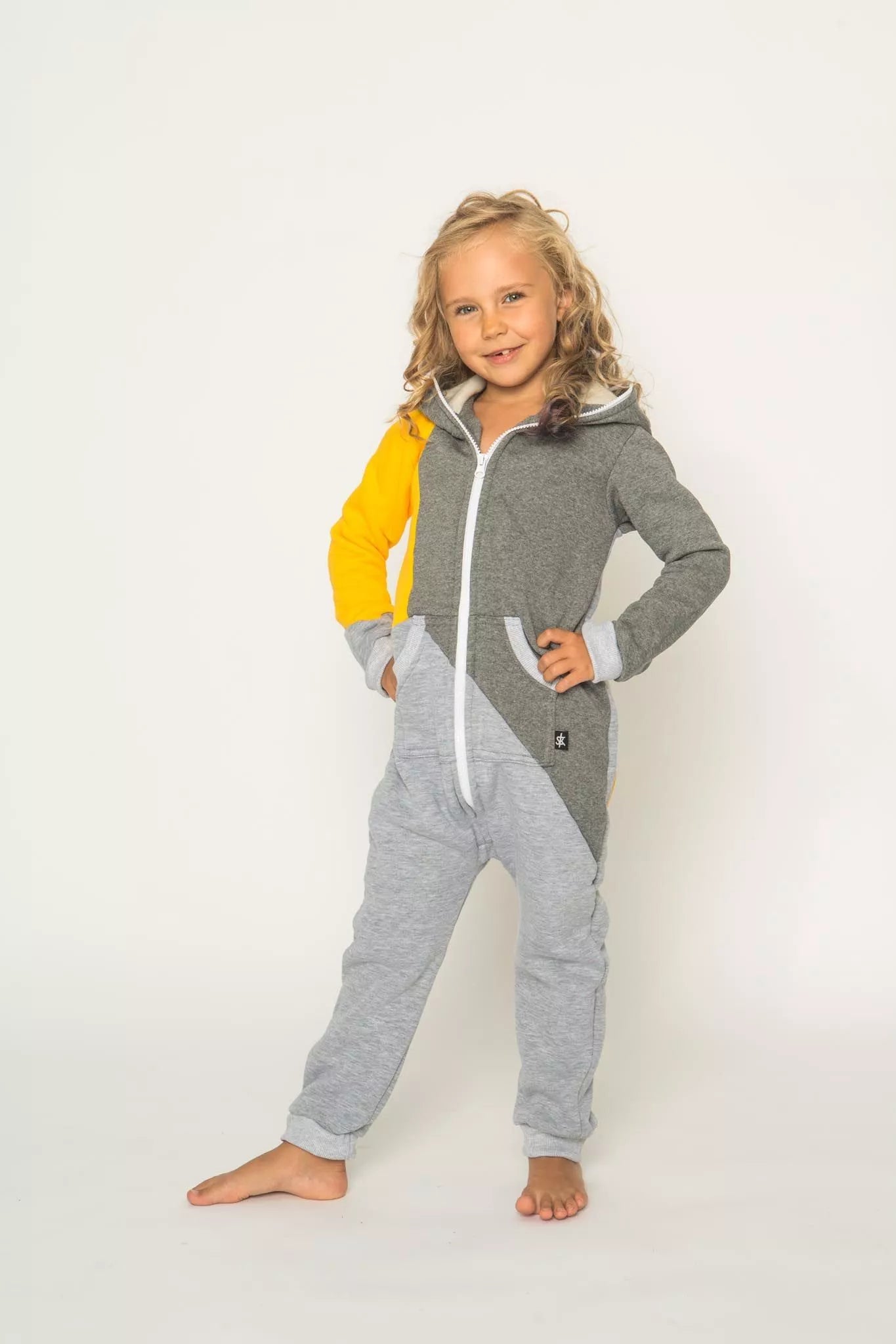 Šiltas jaukus vaikiškas trispalvis kombinezonas, tiek mergaitėms tiek berniukams, skirtas visai šeimai. Geltona rankovė ir dvi pilkos spalvos, nugaroje geltona kišenė (jei neradote pageidaujamos spalvos susiekite) kombinezono ir pačių rankogalių. vaiko ar visos šeimos iniviualumui pabrėžti (užsakant kombineonus šeimai suteikiame nuolaidas - susisiekite). Priekyje kišenės apsiūtos rankogalių medžiaga. Medžiagos vidinė dalis su tankiu pūkeliu, kuris sukuria įpatingą šilumos jausmą ir norą vilkėti kombinezoną nuolat. Sofa Killer kombinezonų modeliai nevaržo judesių, tad puikiai tinka tiek pasyviam tiek aktyviam poilsiui, net miegui. Galite rinktis iš plačios dydžių skalės, o pats rūbas tradiciškai turi būti laisvas, tad kiek didesnis dydis puikiai tiks. Dekoruota Sofa Killer logotipu po kišene.