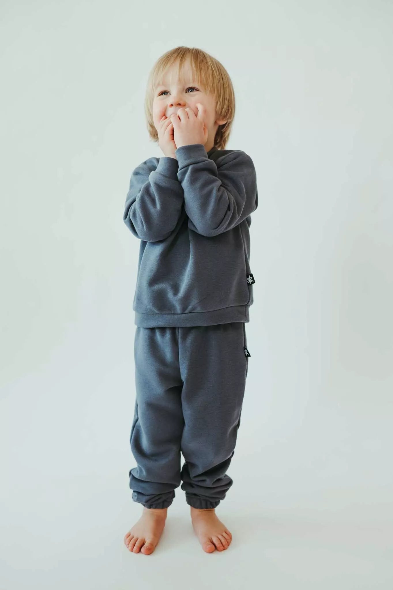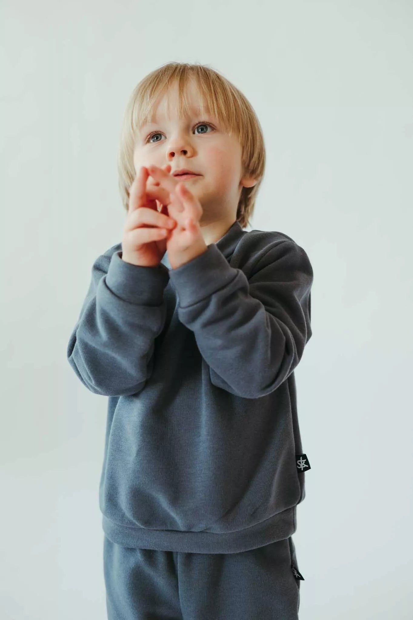 Jaukus vaikiškas tamsiai pilkos spalvos laisvalaikio džemperis, tiek mergaitėms tiek berniukams, skirtas visai šeimai. Vaiko ar visos šeimos iniviualumui pabrėžti (užsakant laisvalaikio džemperių šeimai suteikiame nuolaidas - susisiekite). Medžiagos vidinė dalis su tankiu pūkeliu, kuris sukuria įpatingą šilumos jausmą ir norą vilkėti laisvalaikiodžemperį nuolat. Sofa Killer laisvalaikio modeliai nevaržo judesių, tad puikiai tinka tiek pasyviam tiek aktyviam poilsiui, net miegui. Galite rinktis iš plačios dydžių skalės, o pats rūbas tradiciškai turi būti laisvas, tad kiek didesnis dydis puikiai tiks.