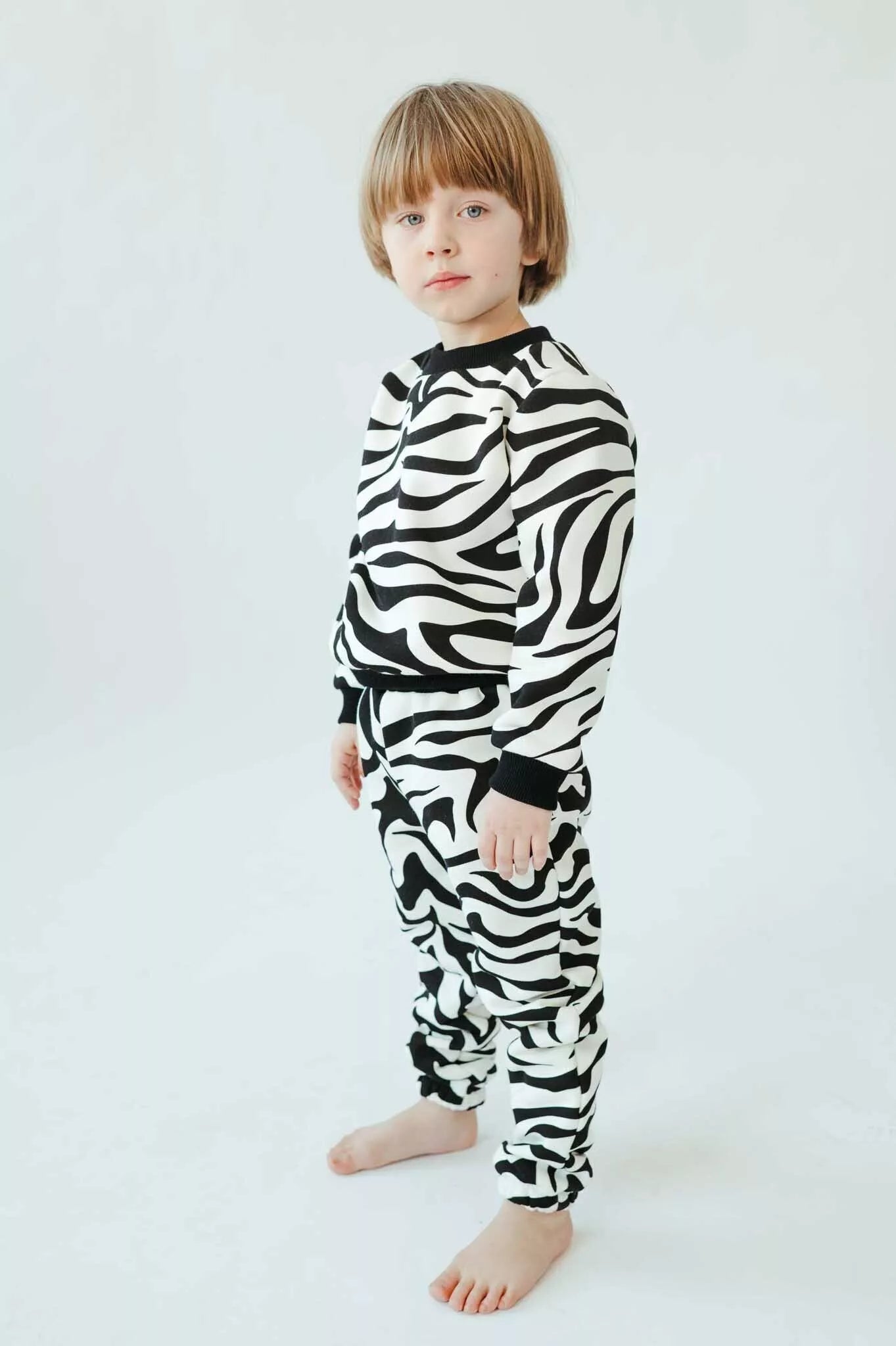 Jaukios vaikiškos zebro raštų, baltos spalvos laisvalaikio kelnės, tiek mergaitėms tiek berniukams, skirtos visai šeimai. Vaiko ar visos šeimos iniviualumui pabrėžti (užsakant laisvalaikio kelnių šeimai suteikiame nuolaidas - susisiekite). Kelnės tokios jaukios, kad sukuria įpatingą šilumos jausmą ir norą vilkėti laisvalaikio kelnes nuolat. Sofa Killer laisvalaikio modeliai nevaržo judesių, tad puikiai tinka tiek pasyviam tiek aktyviam poilsiui, net miegui. Galite rinktis iš plačios dydžių skalės, o pats rūbas tradiciškai turi būti laisvas, tad kiek didesnis dydis puikiai tiks.